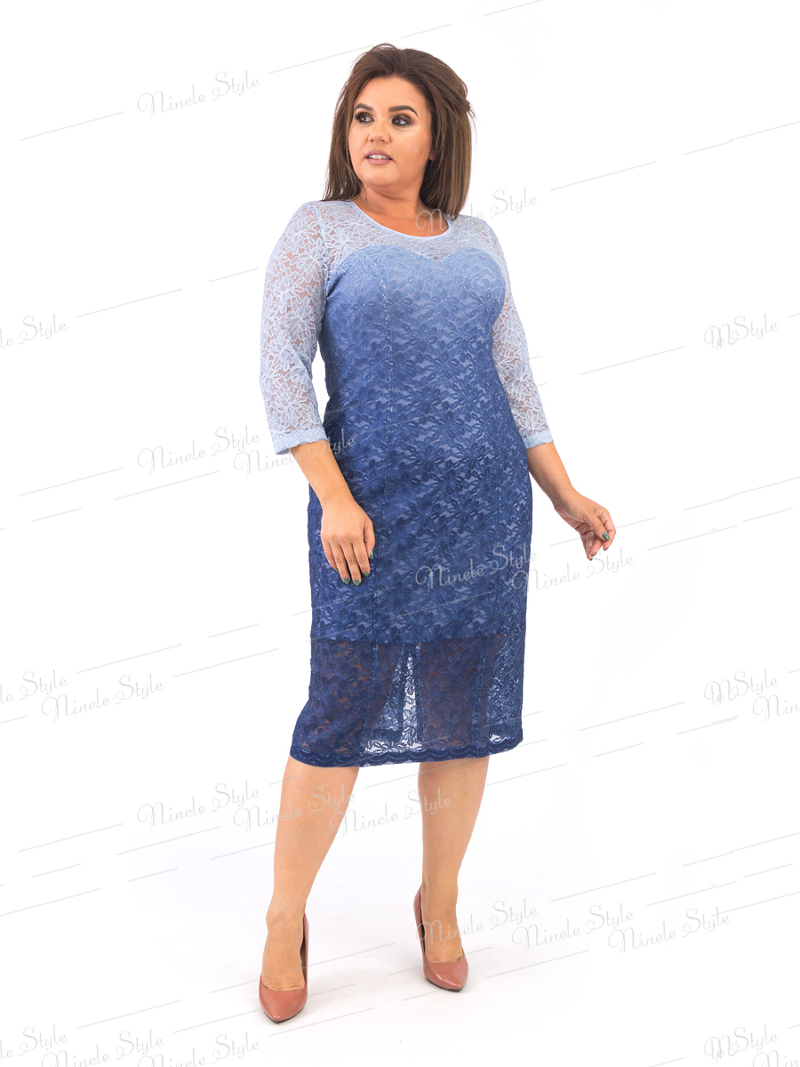 Очень нежное и изысканное с синим градиентом платье приталенного силуэта с рукавом 3/4, подчеркнет стройный силуэт своей обладательницы. Выполнено из утонченного кружевного гипюра, круглый вырез, прозрачный рукав, каплевидный вырез на спинке и облегающая юбка с разрезом, на подкладке. Горловина оформлена полукруглым вырезом. Отлично сочетается с разными аксессуарами. Для вашего нарядного и романтического образа.