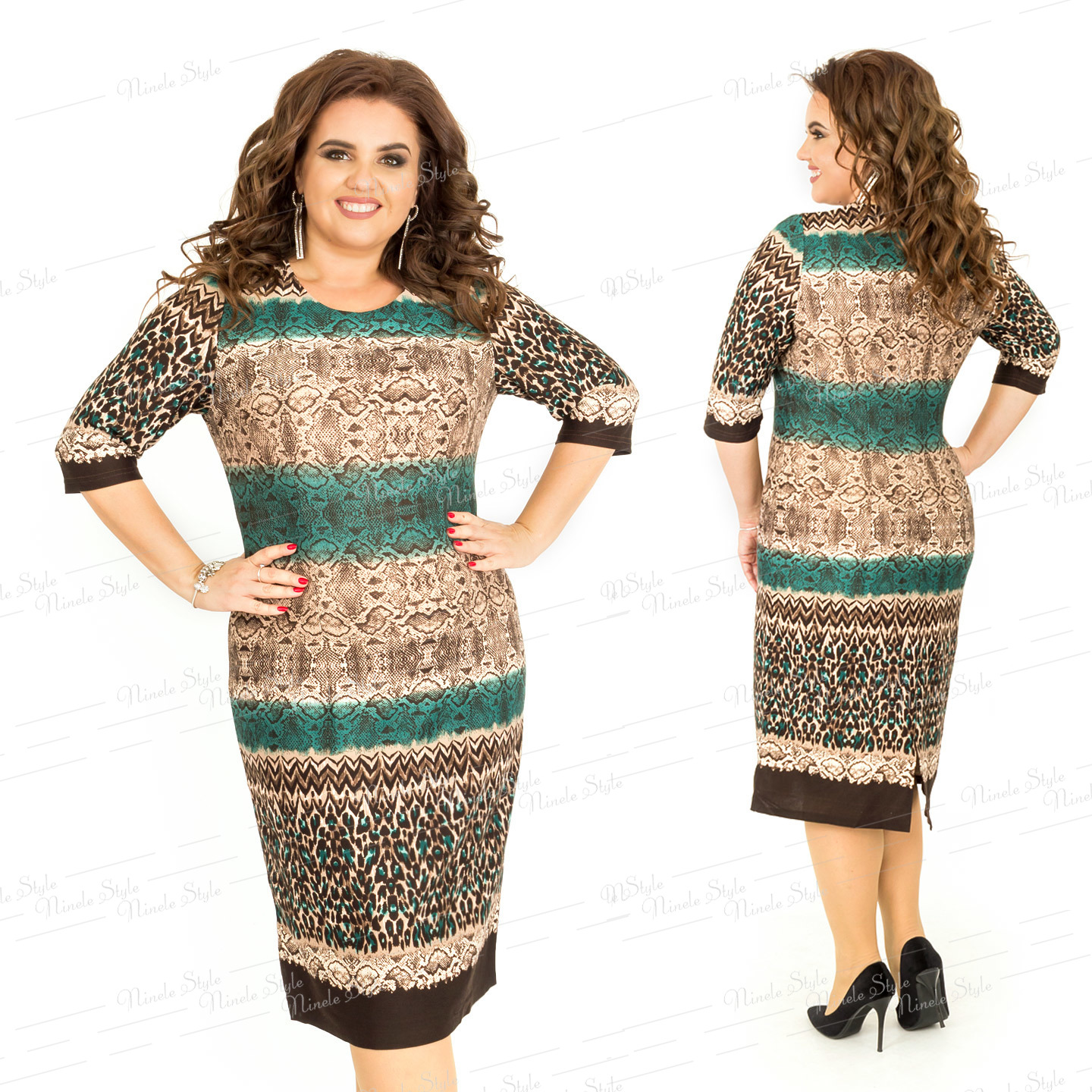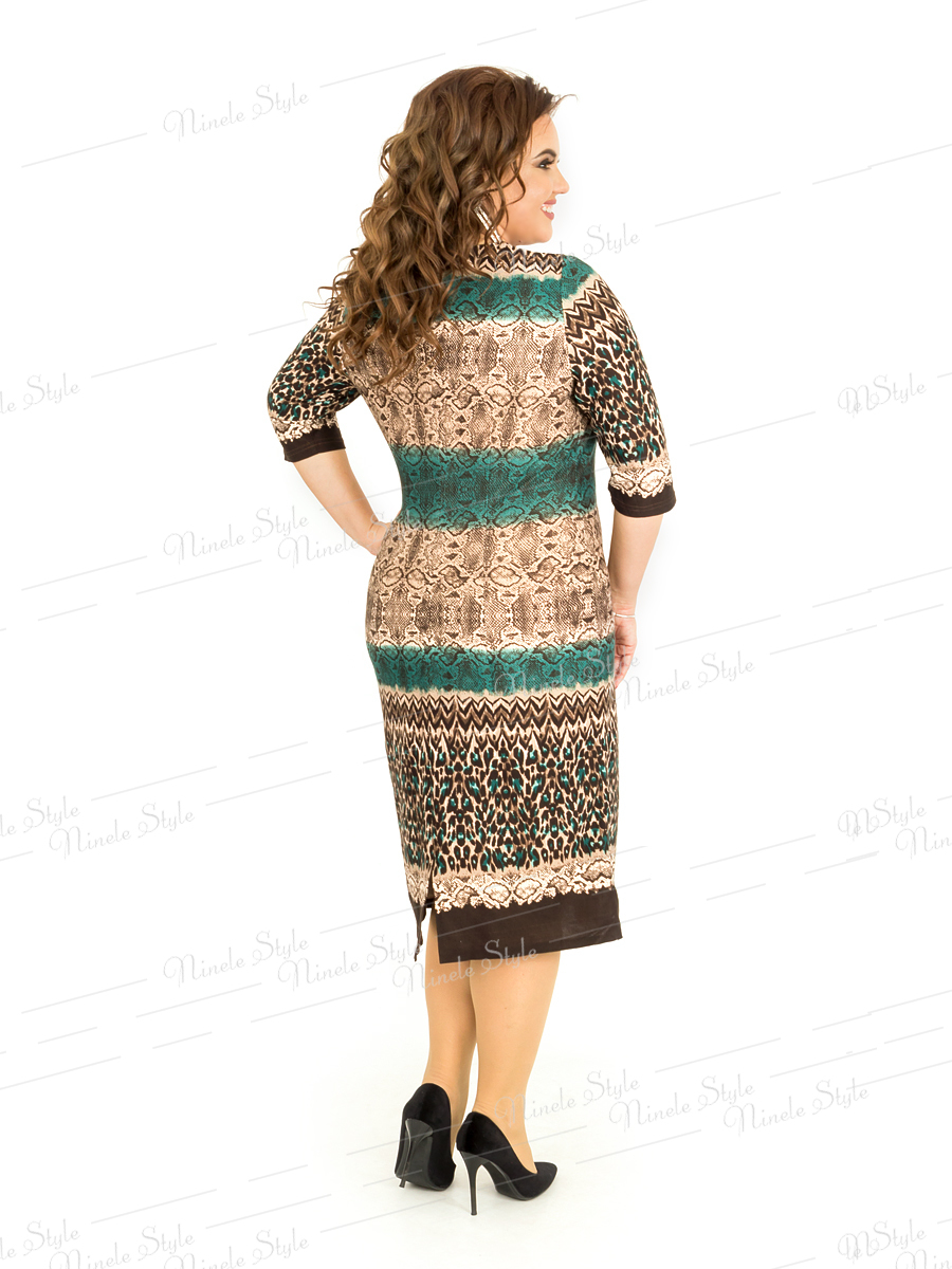 Класическое повседневное платье с оригенальным принтом. Горловина круглая. Рукав втачной, одношевный. Впереди платья  выполнены нагрудные выточки. В среднем шве спинки выполнен разрез. На деталях спинки выполнены талевые выточки.