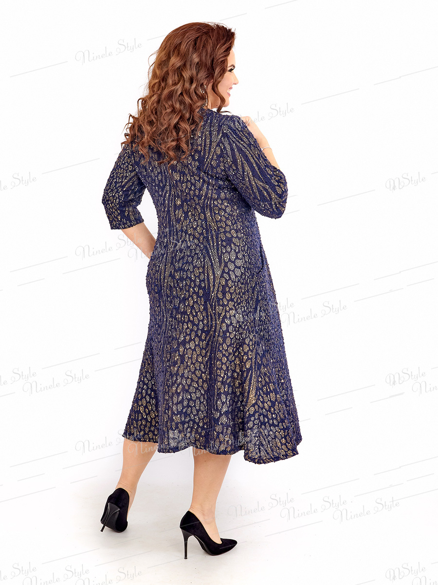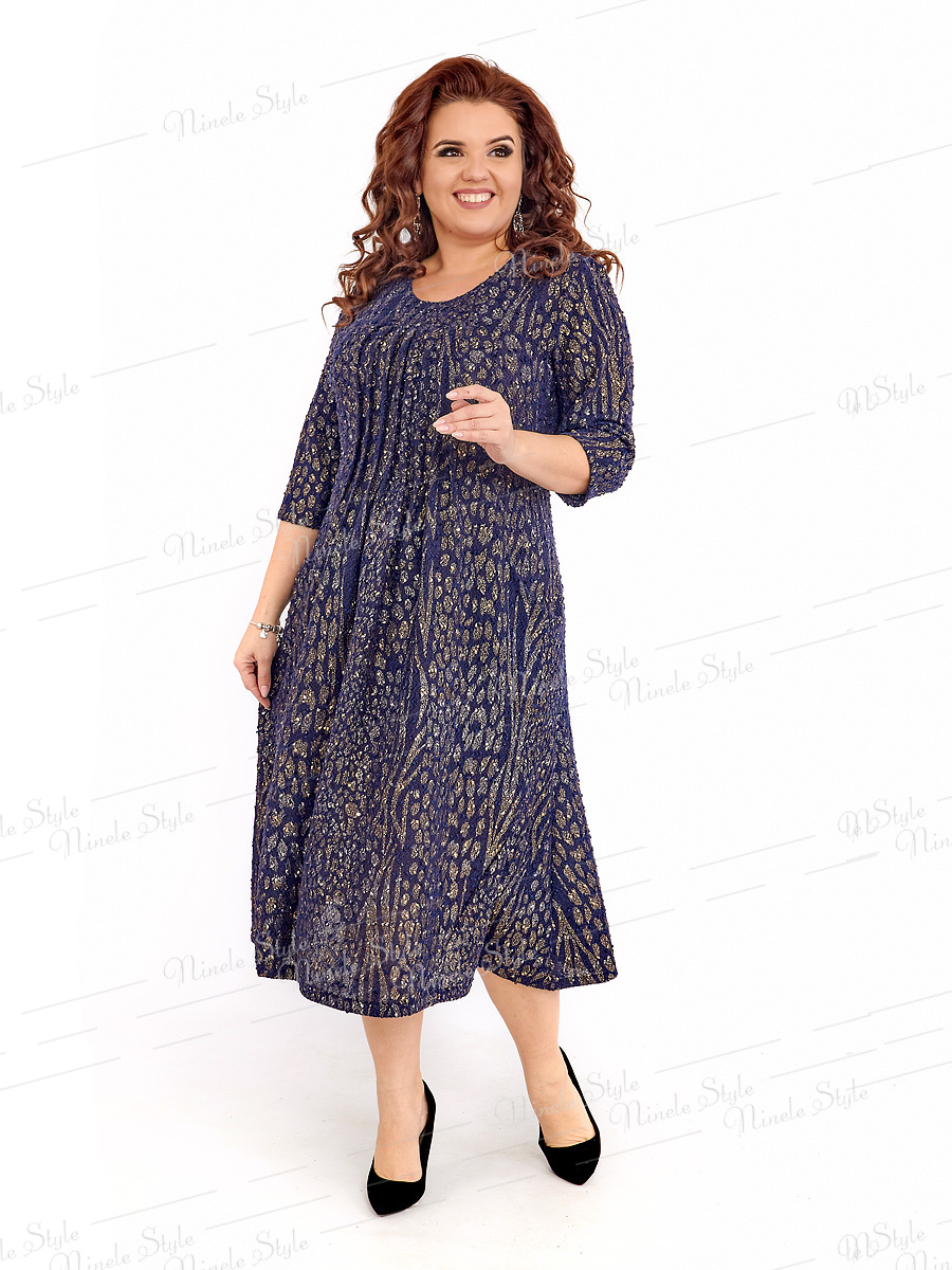 Платье женское в стиле Бохо. Платье расширенное к низу, средней длины. По переду отрезная кокетка, с отрезными бочками плавно переходящими в боковой шов по линии бедра. В боковые швы  по низу вставлены клинья. Центральная часть переда с 8-ю декоративными  складками.  Спинка со средним швом и талевыми выточками. В швах соединения бочков обработаны карманы. Горловина круглая, обработана обтачкой. Рукава одношевные, втачные.