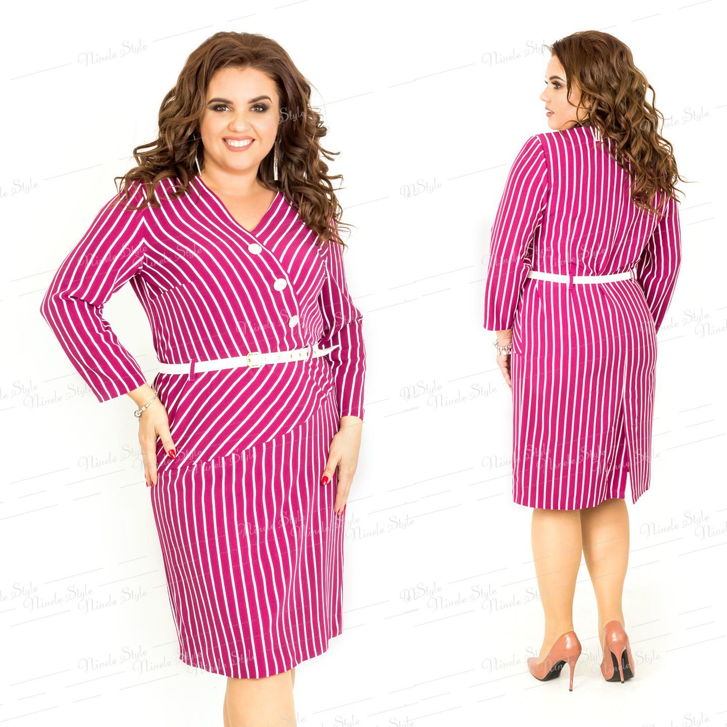 Платье  женское прямого силуэта в полоску. Лиф платья на запах, украшен тесьмой и пуговицами. Рукав втачной, одношевный. Вырез горловины Vобразный , обработан обтачкой.  Платья с вертикальной полосой пользуются большой любовью модниц. Такой принт зрительно вытягивает силуэт, стройнит и смотрится очень эффектно. Полосатые модели миди подходят модницам любого возраста. Такое платье можно надеть и на прогулку, и на свидание, и даже в офис.