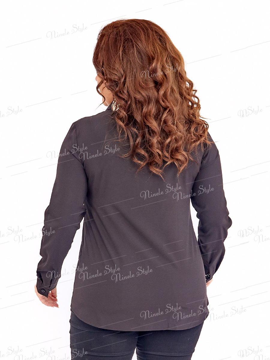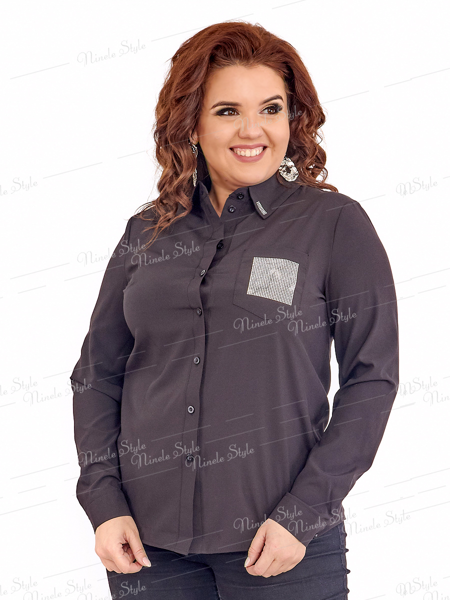 Оригинальная  женская блузка  подойдет как на выход, так и на праздник. Ткань стрейчевая, блузочная. Блузка полуприлегающего силуэта. Горловина овальная, с небольшим воротником на стойке. Рукав длинный собран на манжету. Впереди планка застегивающаяся на пуговицы. Справа  нагрудной карман, украшенный пайеткой.