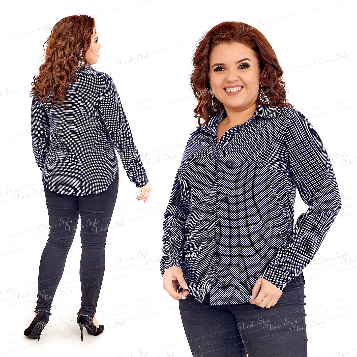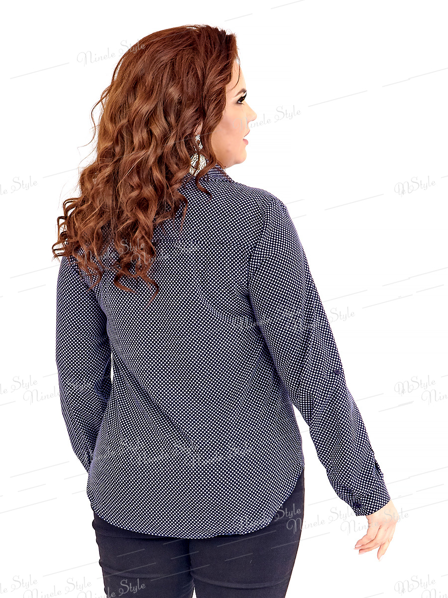 Оригинальная  женская блузка в  мелкий геометрический рисунок подойдет как на выход, так и на праздник. Ткань стрейчевая, блузочная. Блузка полуприлегающего силуэта. Горловина овальная, с небольшим плосколежащим  воротником. Рукав длинный собран на манжету. Впереди планка застегивающаяся на пуговицы. Блузка без карманов.