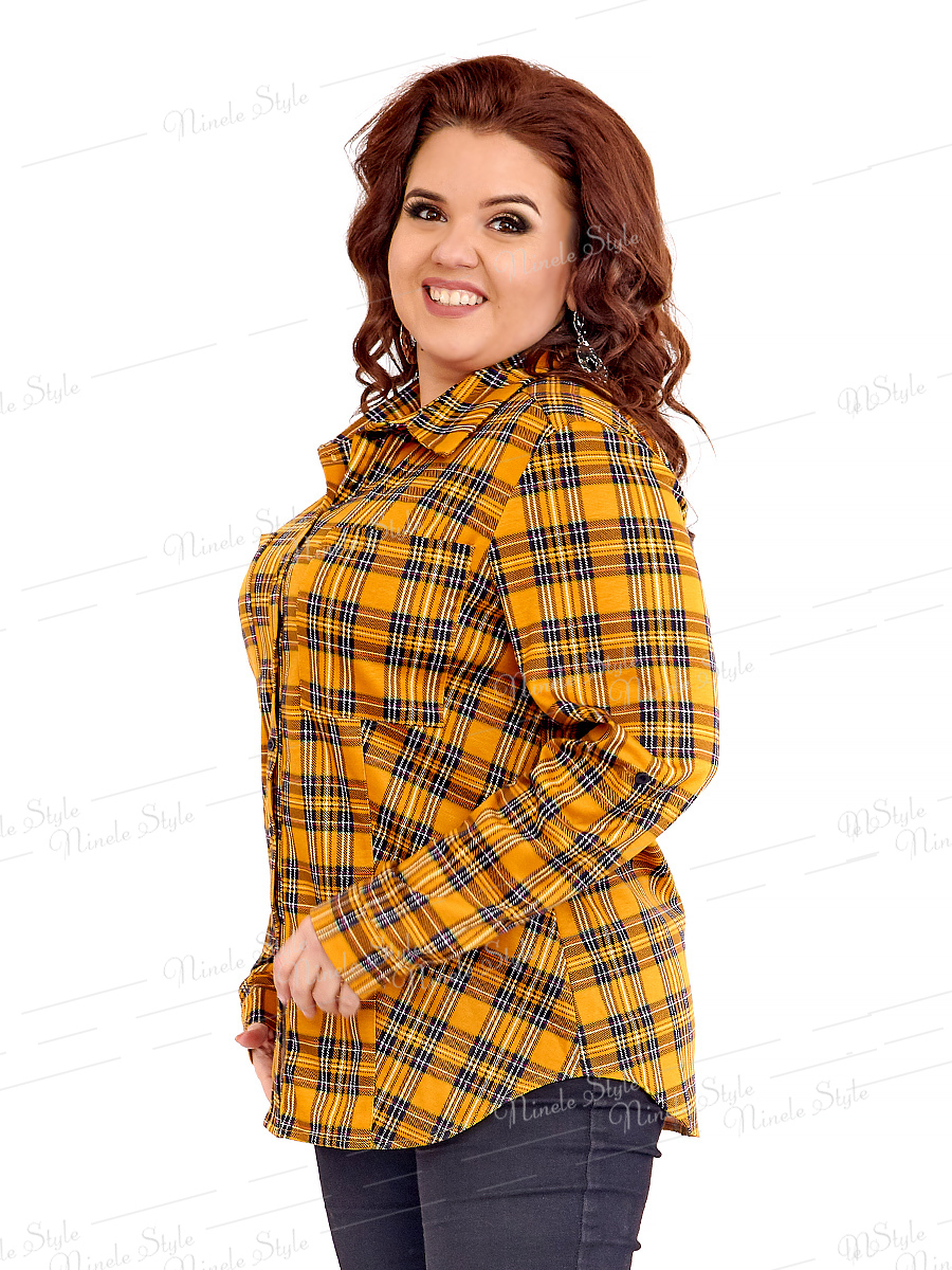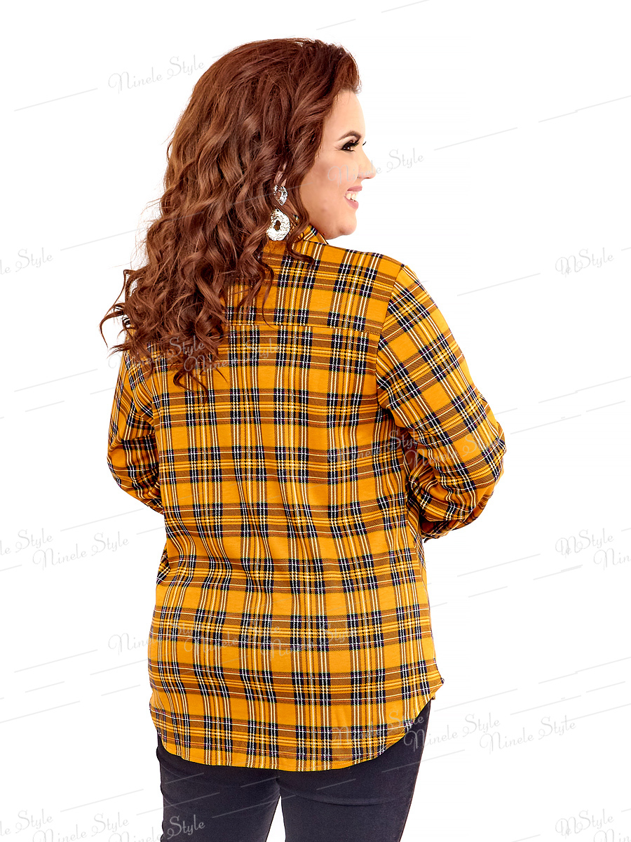 Оригинальная  женская блузка в  клетку  подойдет как на выход, так и на праздник. Ткань  французский трикотаж. Блузка полуприлегающего силуэта. Горловина овальная, с небольшим воротником на стойке. Рукав длинный сбран на манжету. Впереди  рельефы. Рисунок  боковых деталей выложен по косой. По центру переда  планка застегивающаяся на пуговицы. С двух сторон  нагрудные  карманы.