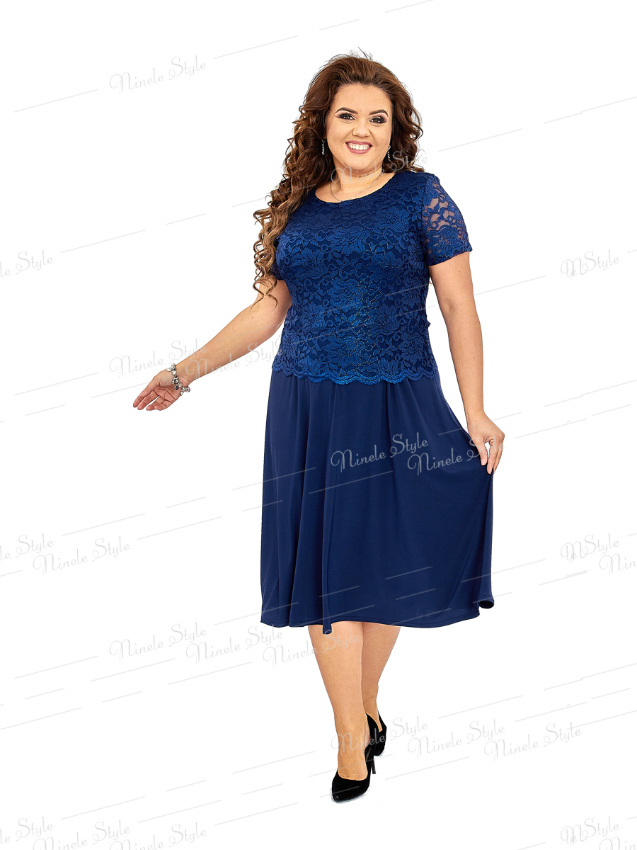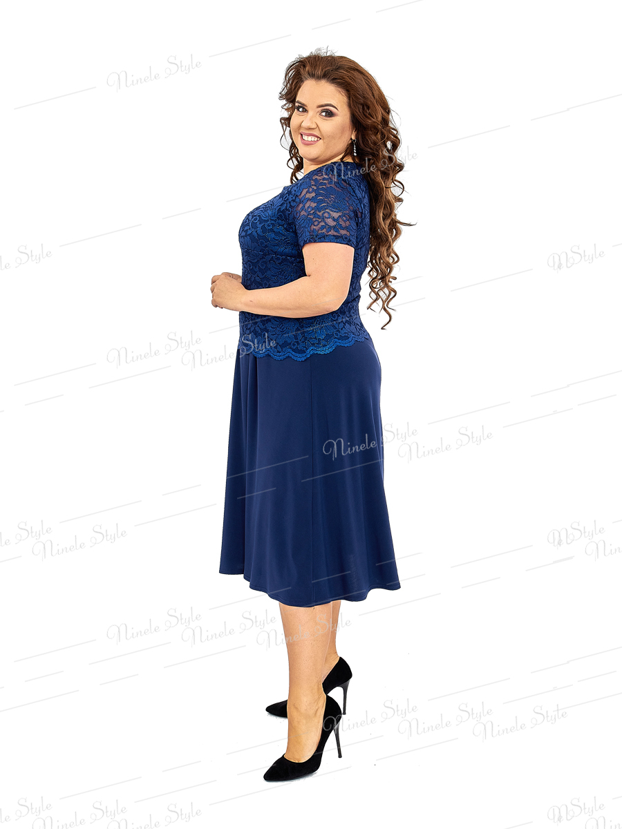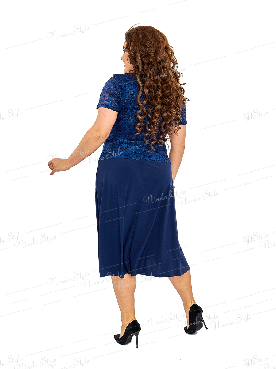 Стильное вечернее платье  баклажанового цвета. Платье выполнено из двух видов ткани. Платье отрезное по линии талии. Юбка расклешенная. Лиф двухслойный. Внутренний слой из масла, а верхний из нежного гипюра с напылением. Рукав короткий, одношевный.
