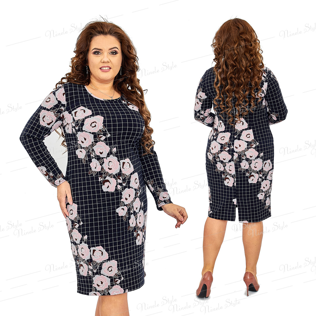 Повседневное трикотажное платье с цветочным принтом подойдет для повседневной носки. Платье выполнено в классическом стиле. Впереди выполнены нагрудные выточки. Спинка с центральным швом и талевыми выточками. Горловина круглая, обработана бейкой. Рукав длинный, одношевный.