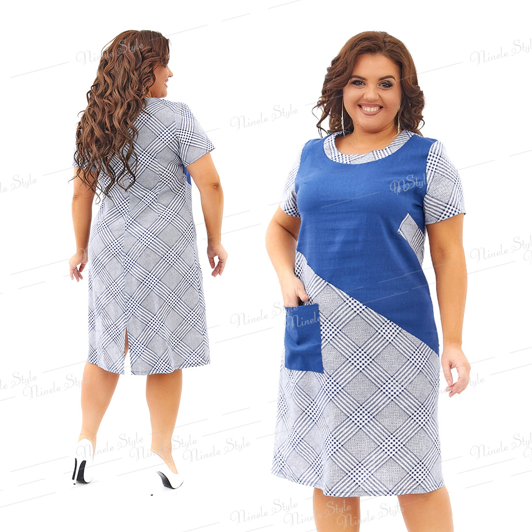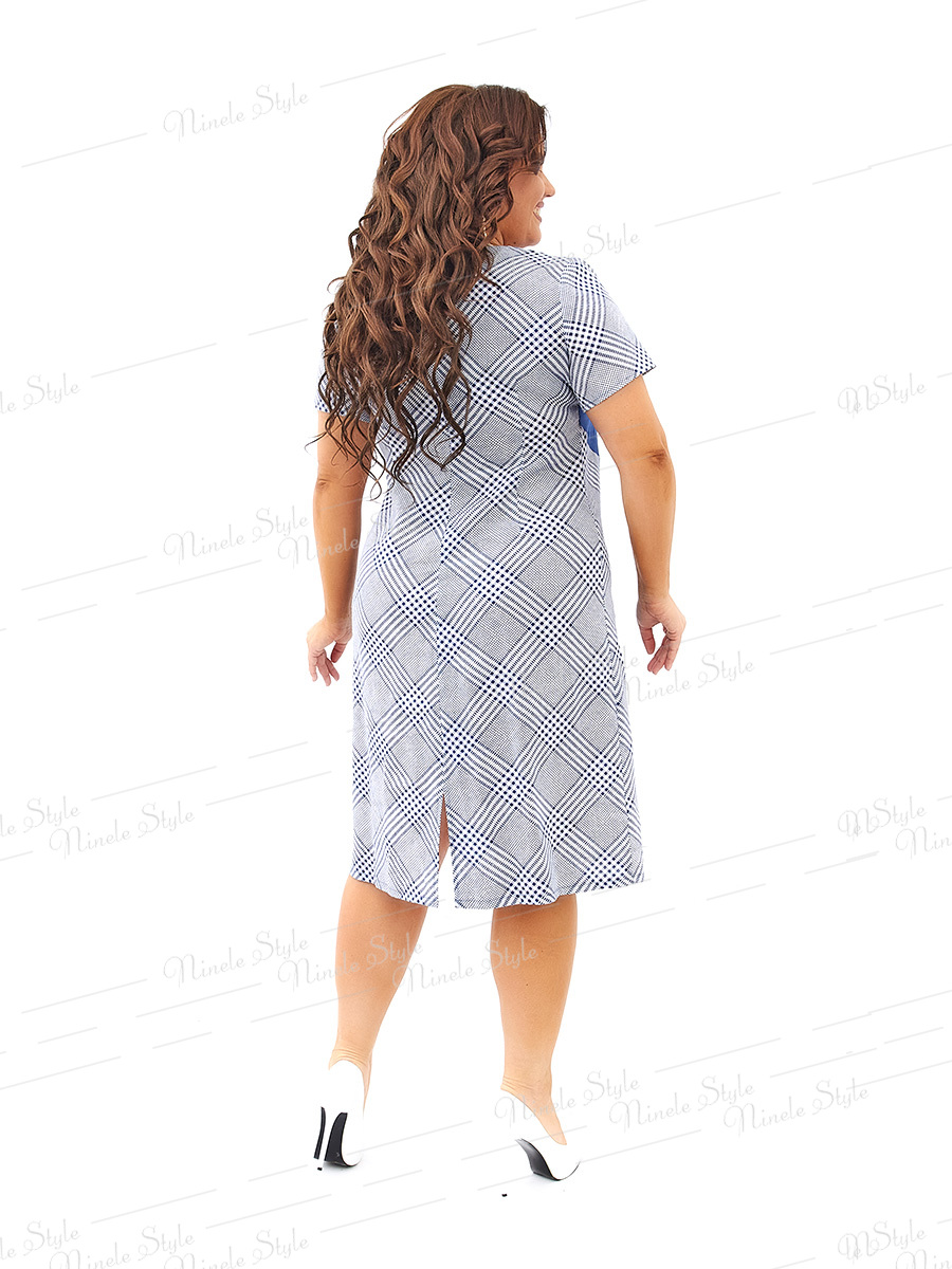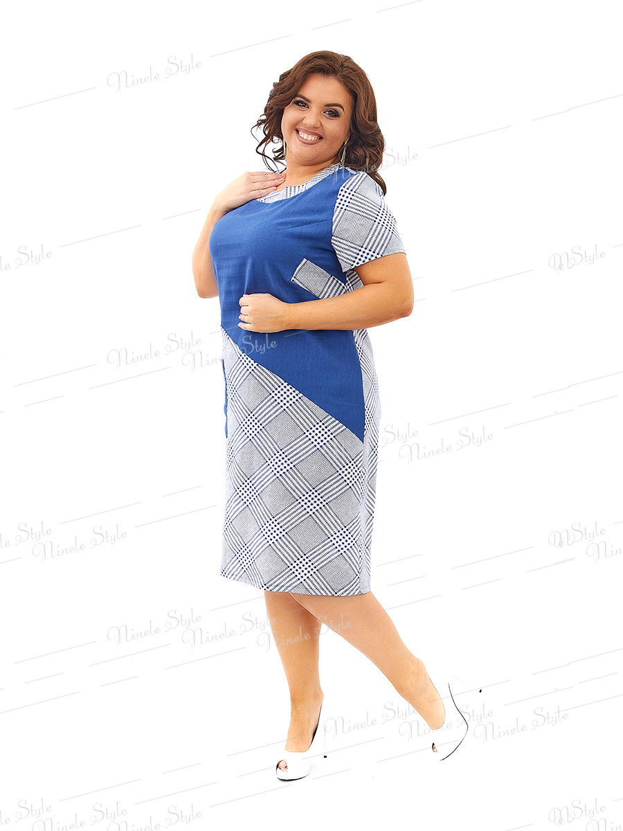 Повседневное платье в клетку подойдет  любой женщине.Спинка платья  с талевыми выточками.В среднем шве  спинки шлица.Перед платья состоит из двух частей,верх однотонный,низ в клетку.По лифу переда  с права нагрудная выточка.С лева подрезной бочек .С лева накладной карман. Рукав вточной,одношовный.Горловина круглая, обработана обтачкой в клетку.