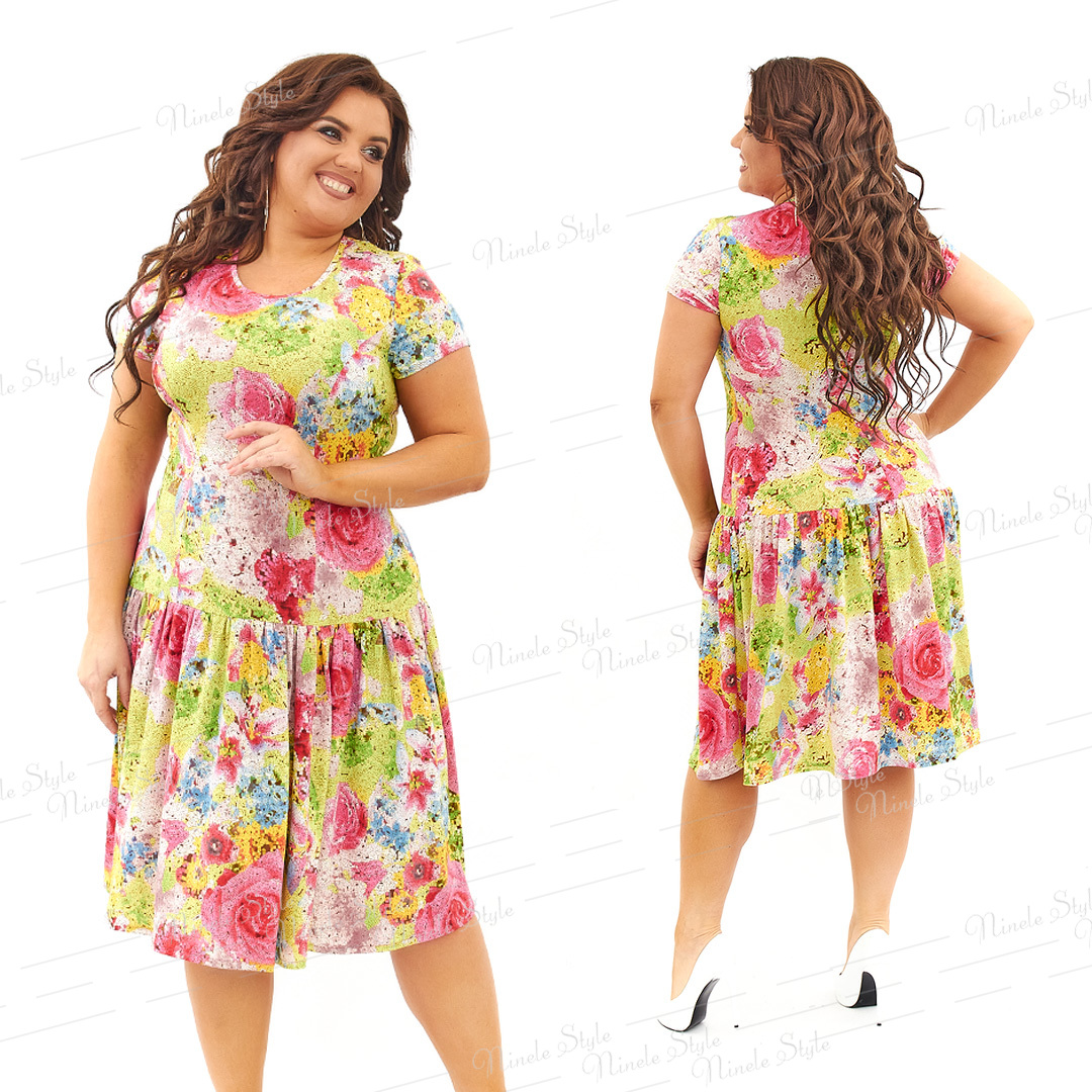 Повседневное платье с оригинальным принтом.   Платье отрезное по линии бедер.   Перед с рельефами от проймы. Горловина круглая , обработана бейкой. Юбка чуть присборенна . Рукав короткий , втачной.
