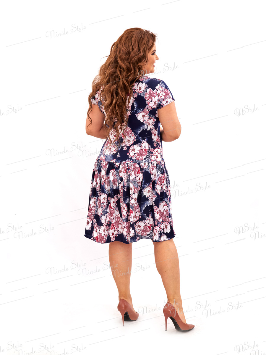 Повседневное платье с оригинальным принтом.   Платье отрезное по линии бедер.   Перед с рельефами от проймы. Горловина круглая , обработана бейкой. Юбка чуть присборенна . Рукав короткий , втачной.