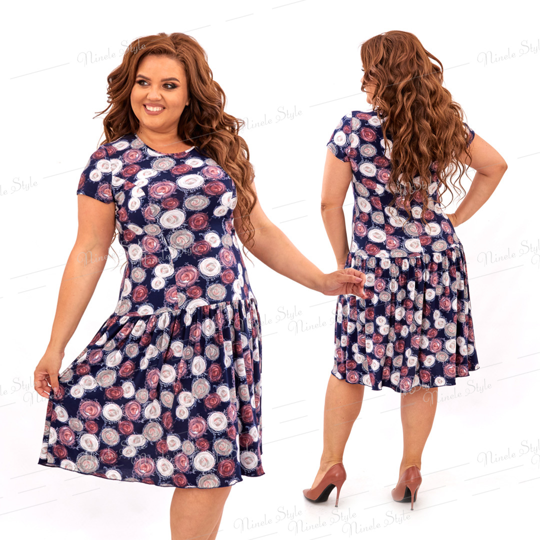 Повседневное платье с оригинальным принтом.   Платье отрезное по линии бедер.   Перед с рельефами от проймы. Горловина круглая , обработана бейкой. Юбка чуть присборенна . Рукав короткий , втачной.