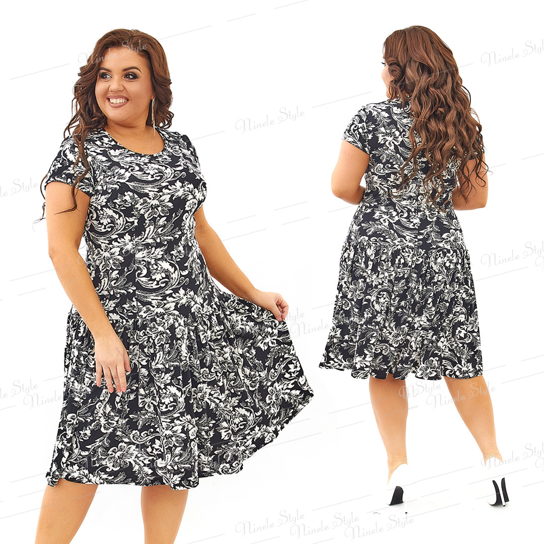 Повседневное платье с оригинальным принтом.   Платье отрезное по линии бедер.   Перед с рельефами от проймы. Горловина круглая , обработана бейкой. Юбка чуть присборенна . Рукав короткий , втачной.