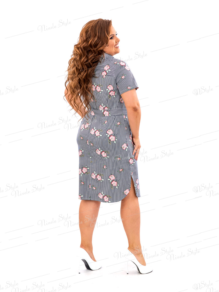 Повседневное платье рубашка выполнено из коттоновой ткани в полоску. Спереди и на спинке кокетка. Воротник рубашечный на стойке. Впереди планка чуть ниже груди. Рукав втачной, одношовный. Справа накладной карман. Растяжимость слабая.