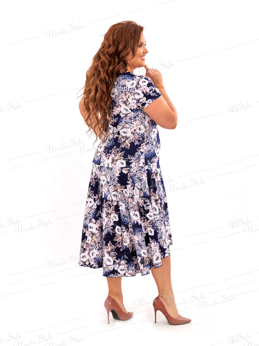 Воздушное летнее платье синего цвета  с цветочным принтом,выполнено в романтическом стиле.Станет отличным дополнением вашего гардероба.Платье с отрезной заниженой линией талии.Юбка расклешенная,сзади длиннее.В таком платье любая женщина выглядит привлекательно.
