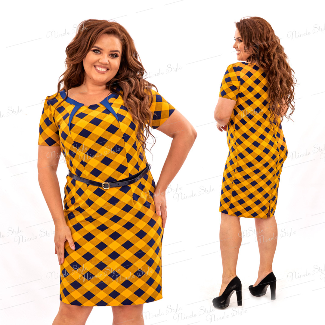 Повседневное женское платье приталенного силуэта.Платье выполнено из  стрейчевого крепа в клетку.Фигурная горловина обработана обтачкой.На юбке небольшой разрез.