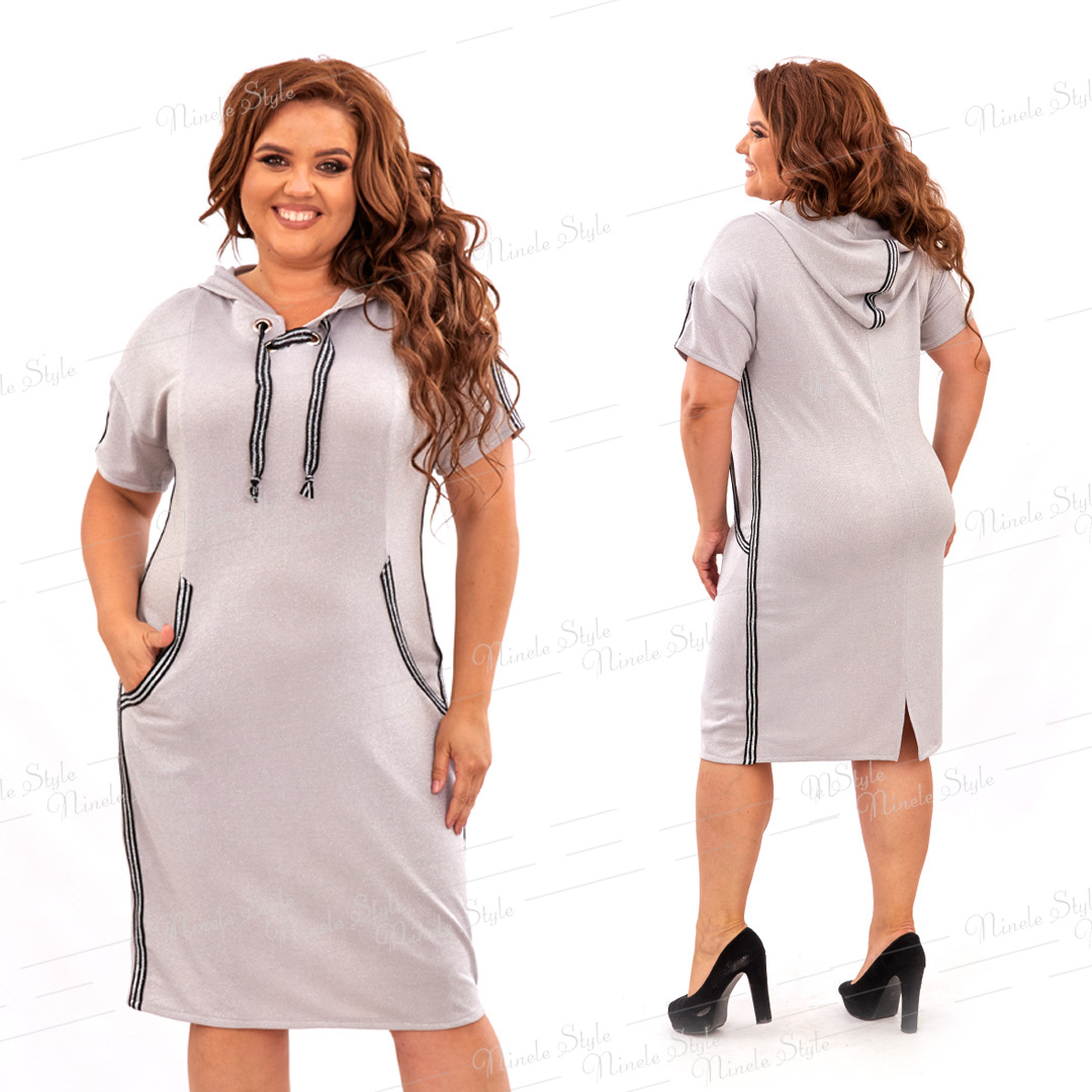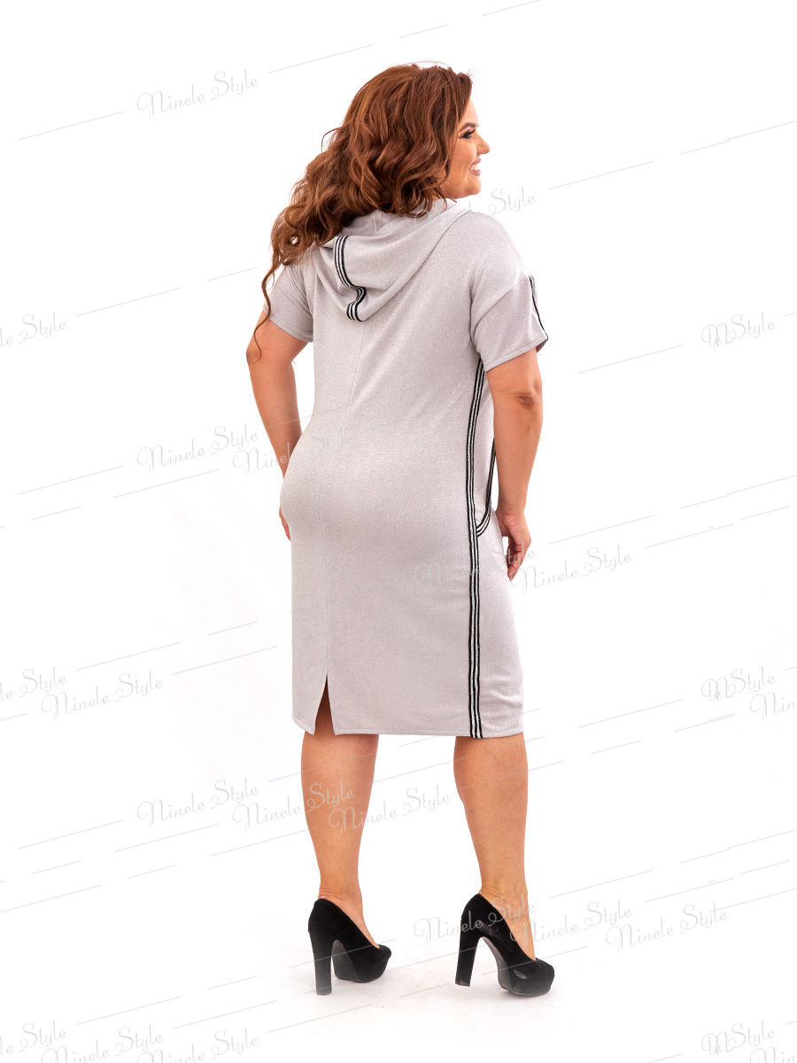 Женское спортивное платье,слегка приталенного силуэта,с капюшоном. Платье выполнено из трикотажа.Изделие декорировано тесьмой. На юбке спинки небольшой разрез.На полочке карманы с тесьмой.