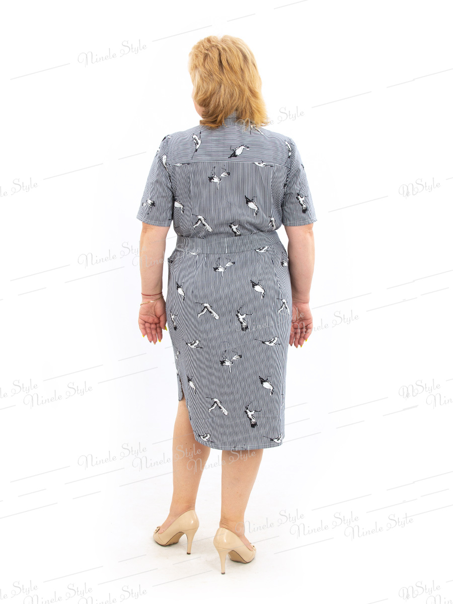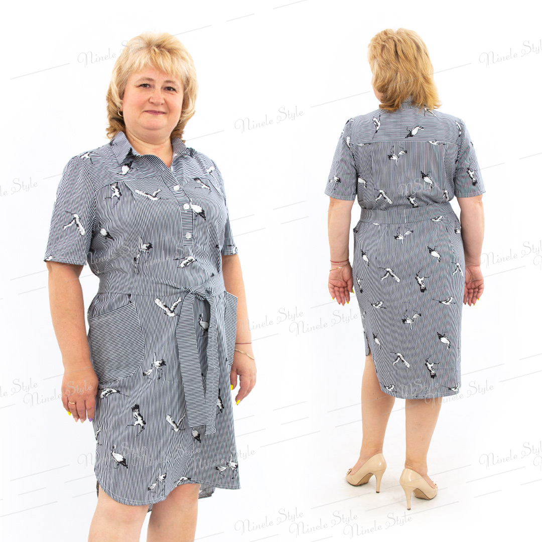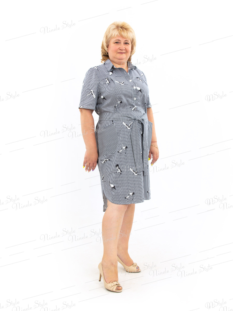 Женская платье-рубашка прямого силуэта.Выполнено из коттоновой ткани.На спинке изделия приточная кокетка.На полочке кокетка.Карманы в боковых швах.Рукав короткий,вточной одношовный.Планка на пуговицах до центора груди.Воротник рубашечный на стойке.Пояс прилагается.