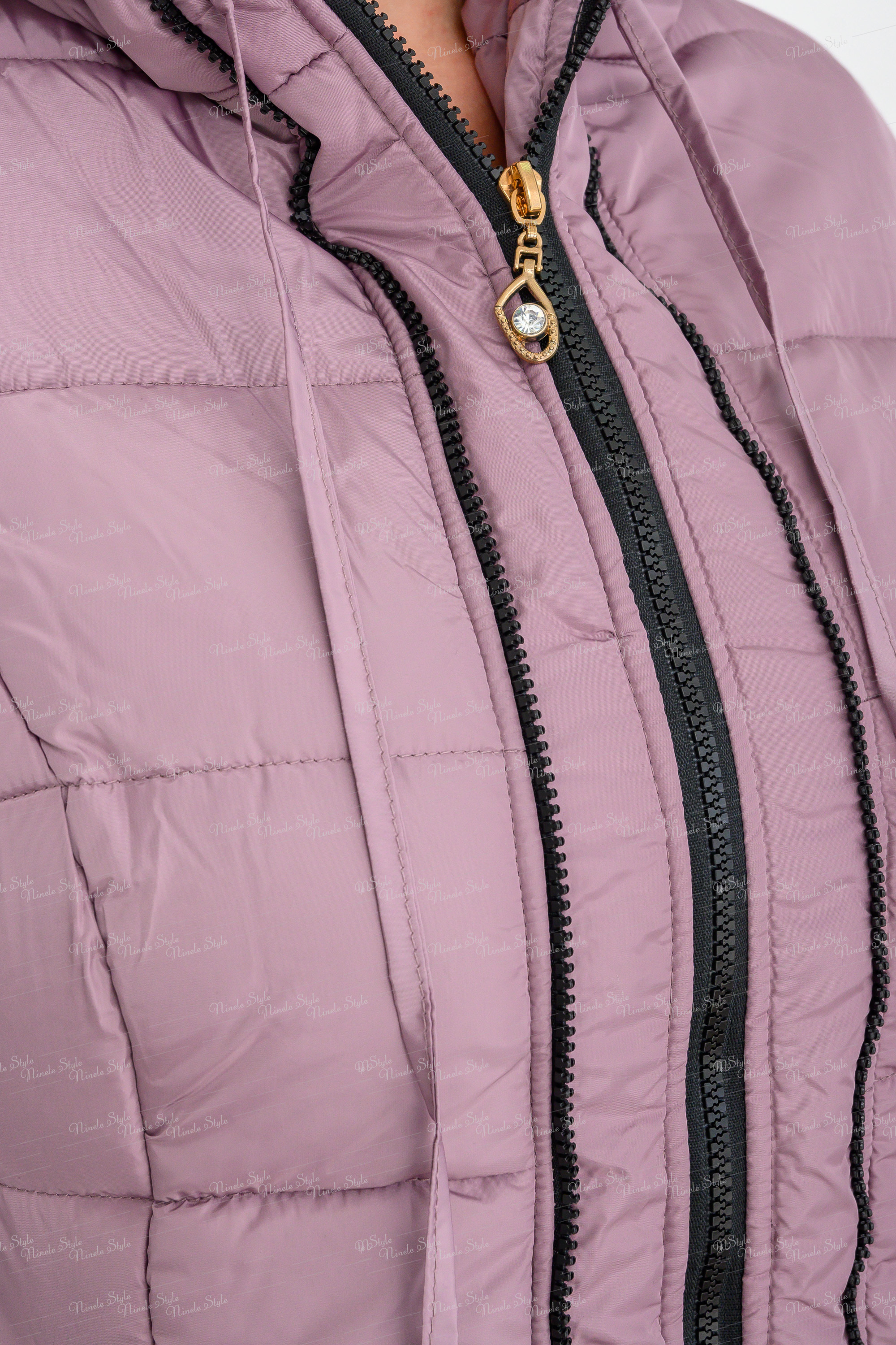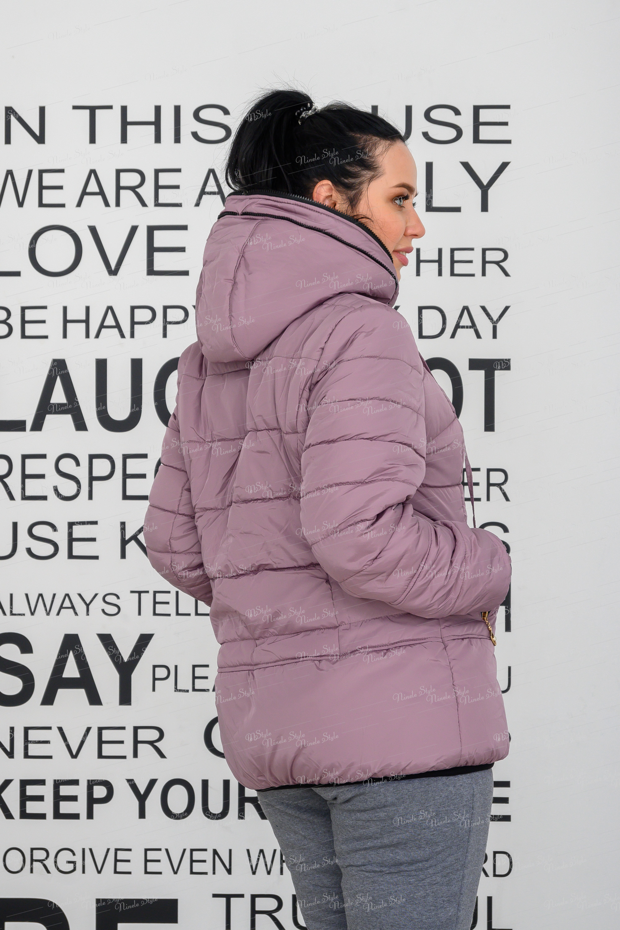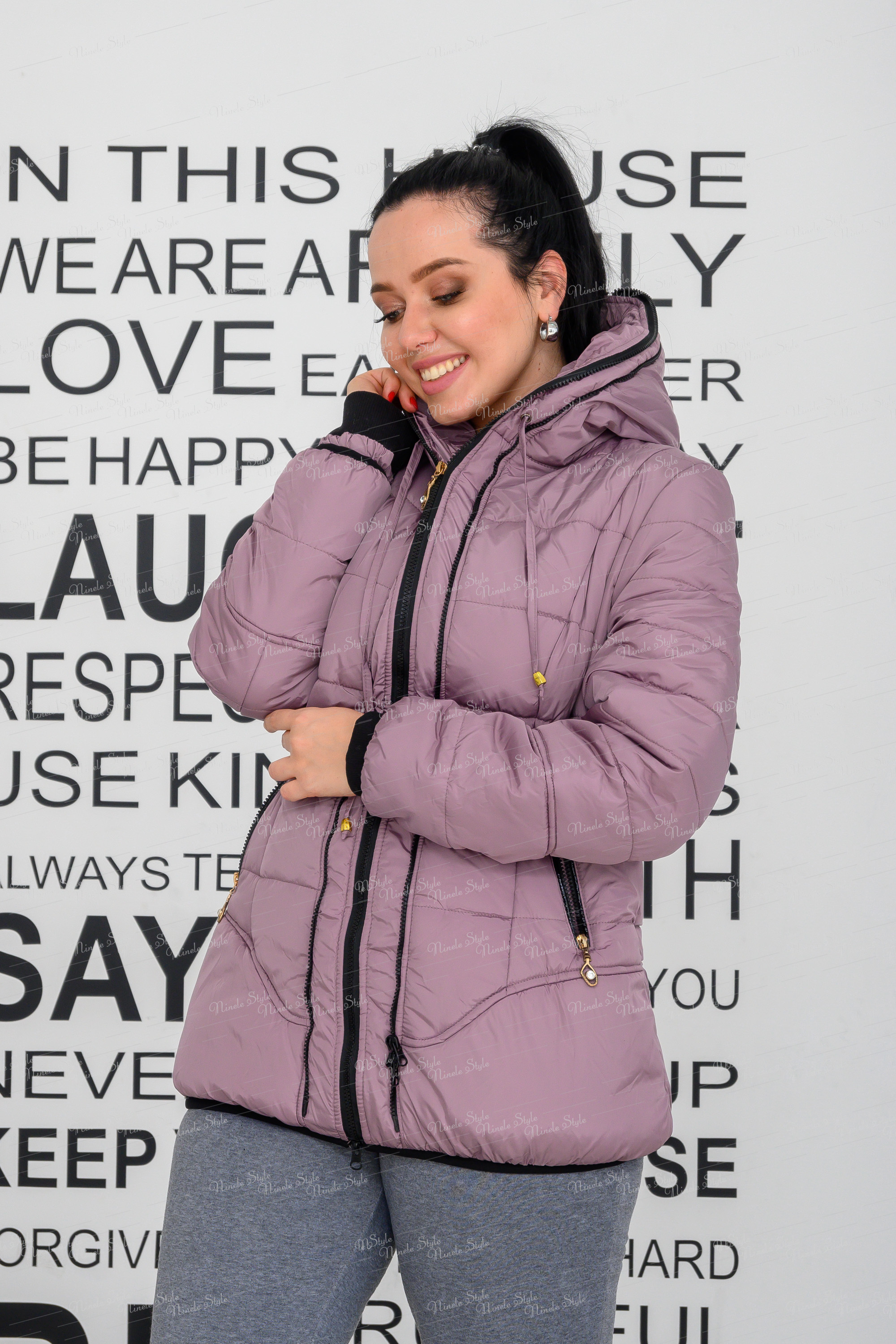 Куртка женская зимняя, на силиконе, с капюшоном из плащевой ткани. По переду рельефы от плечевого шва. Спинка с рельефами. Рукава втачные.Куртка с центральной застежкой на молнию. Подкладка из ткани флис. Наполнитель - силикон. Карманы на молнии.