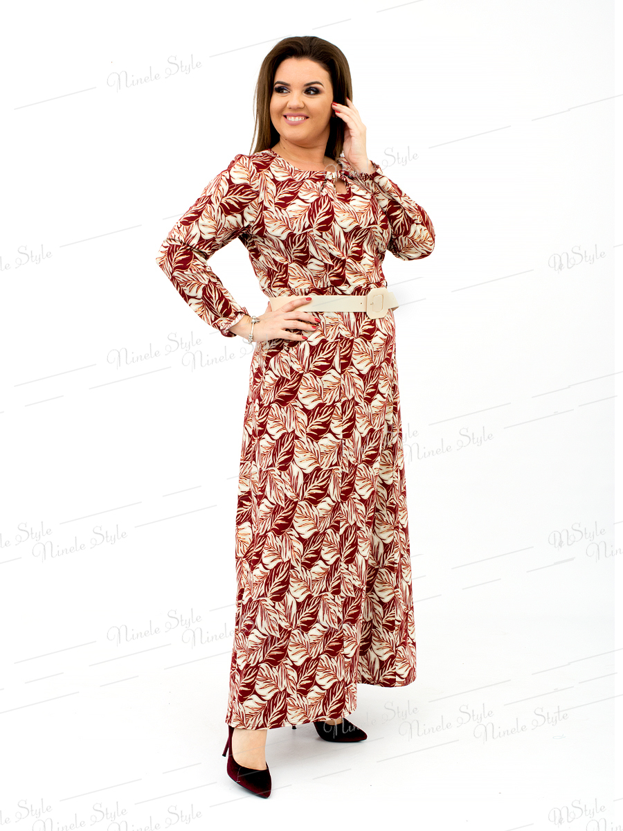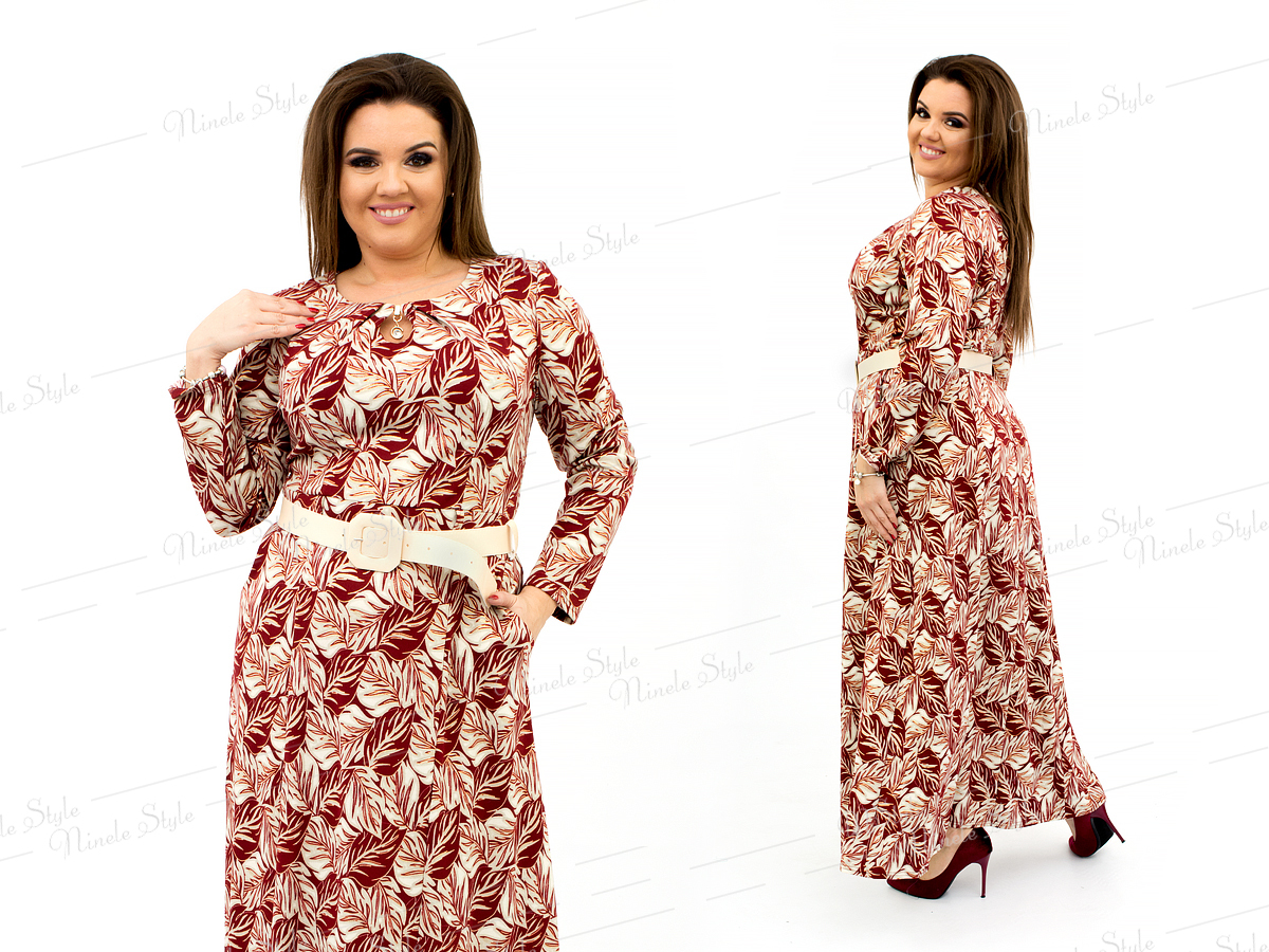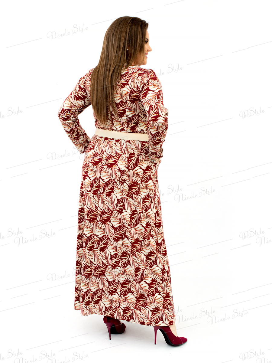 Трикотажное длинное женское платье с принтом - персиковое 159-3