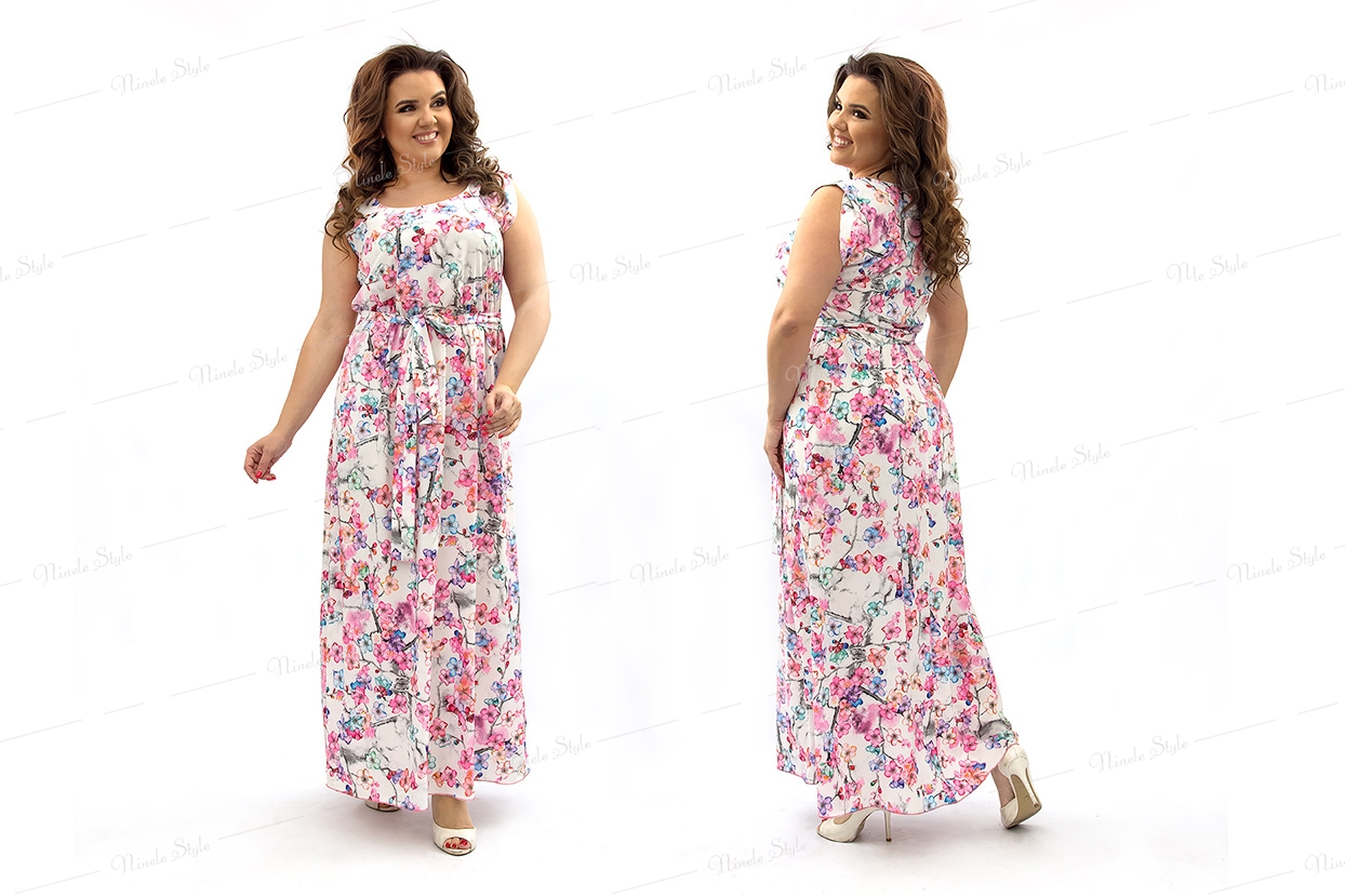 Очень нежное, розовое платье в пол с цветочным принтом. Поясок изящно подчеркивает изгибы талии. Выполненно из ультрамягкой ткани софт - по многим признакам похожа на велюр. Платье в большых размерах от украинского производителя Ninele-Style. Данное платье отлично подойдет для повседневной жизни: легко, удобно и красиво! Новинка Весна-Лето 2019 года!