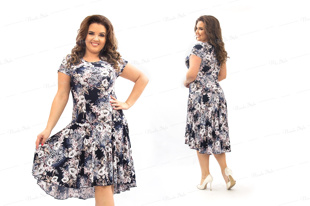 Платье женское, выполнено в романтическом стиле. Лиф платья с рельефами выходящими из проймы. Платье с отрезной, заниженой линией талии. Юбка расклешенная сзади длиннее. В таком платье любая женщина выглядит воздушной.