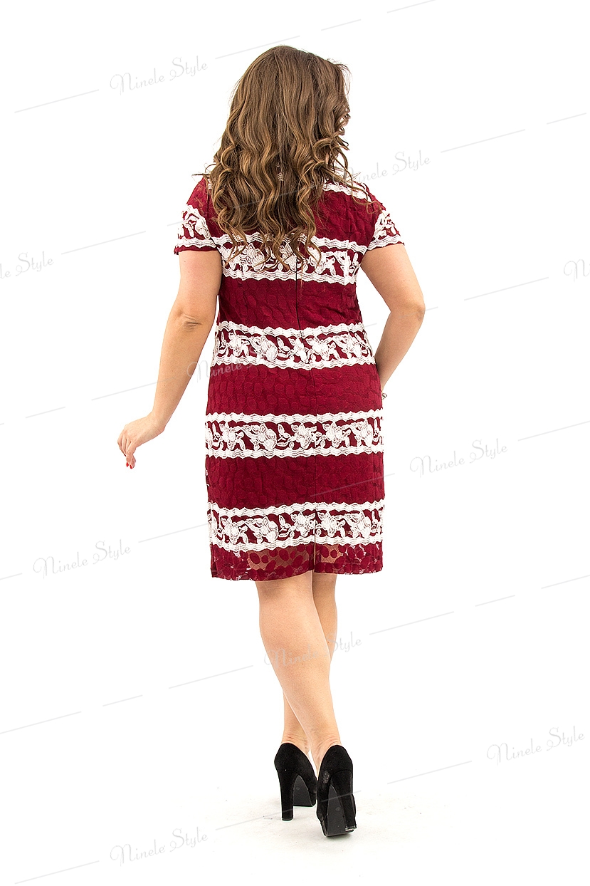 Элегантное платье прилегающего силуэта, подчеркнет все достоинства Вашей фигуры и не оставит Вас незамеченной. Платье длиной ниже колена, выполнено из кружева. Спинка с талевыми вытачками и средним швом, в котором обработан разрез. Рукава одношевные, вточные, короткие. Горловина круглая.