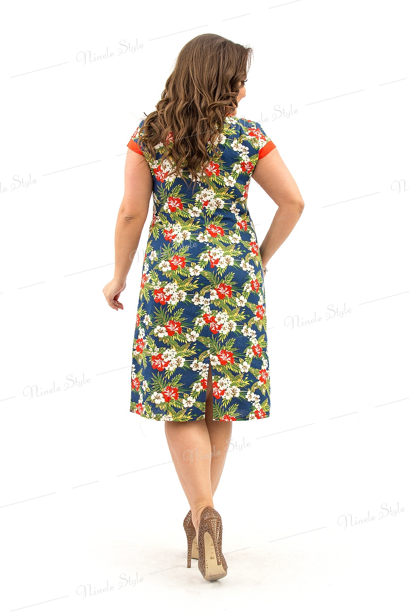 Элегантное повседневное женское платье с цветочным принтом зеленое 215-2