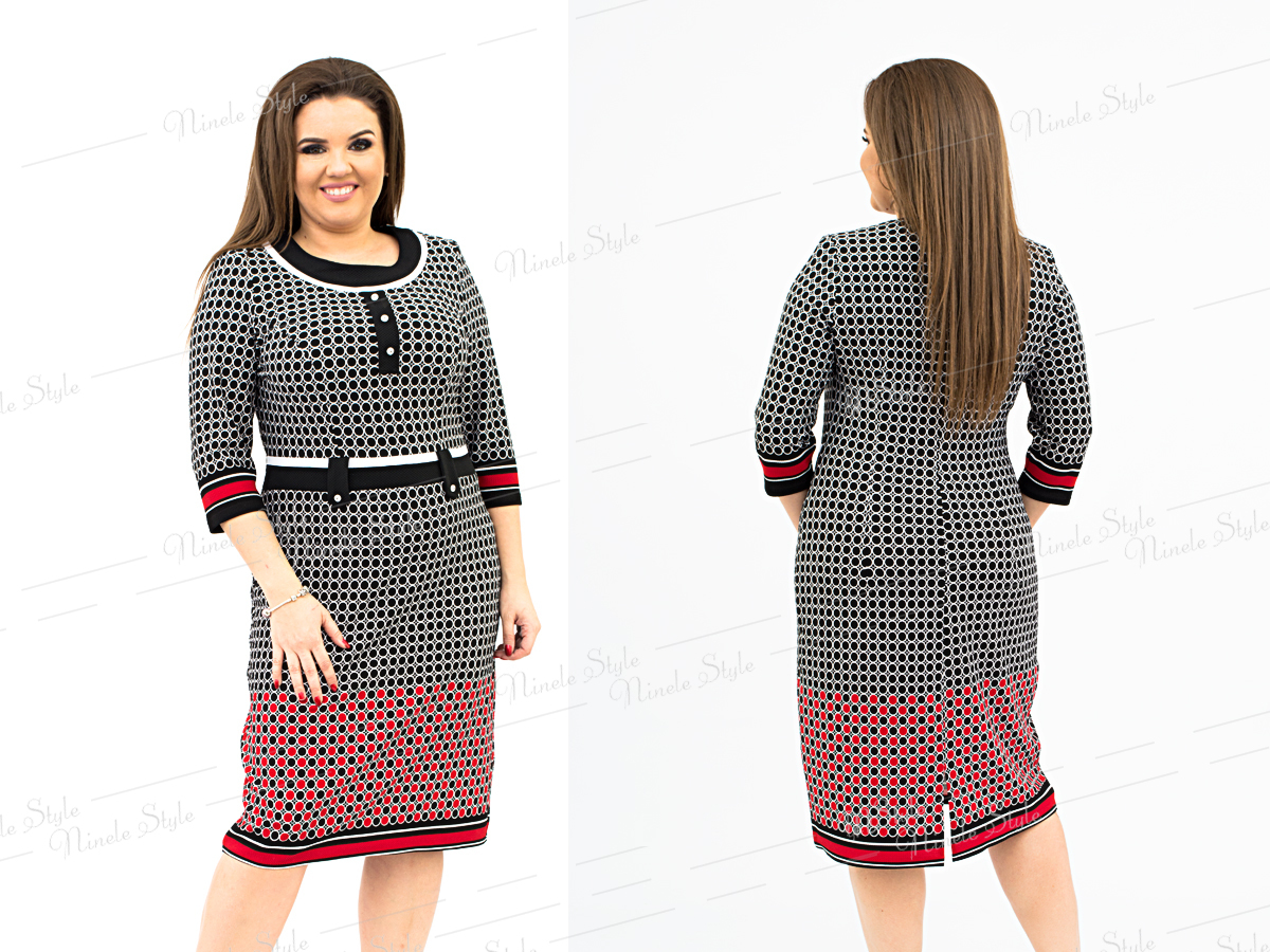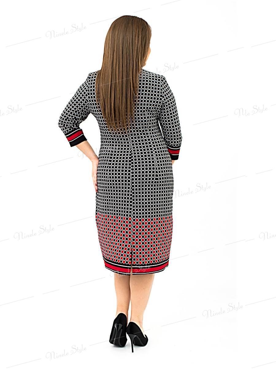 Повседневное женское платье с горохоаым принтом обязательный элемент женского гардероба.Перед платья отрезной по линии талии.Лиф платья с с рельефами от проймы.Горловона круглая,декорирована отделочной тканью. По линии талии вставлен пояс,декорированый клапанами..Спинка цельнокроенная.Рукав вшивной,одношевный.