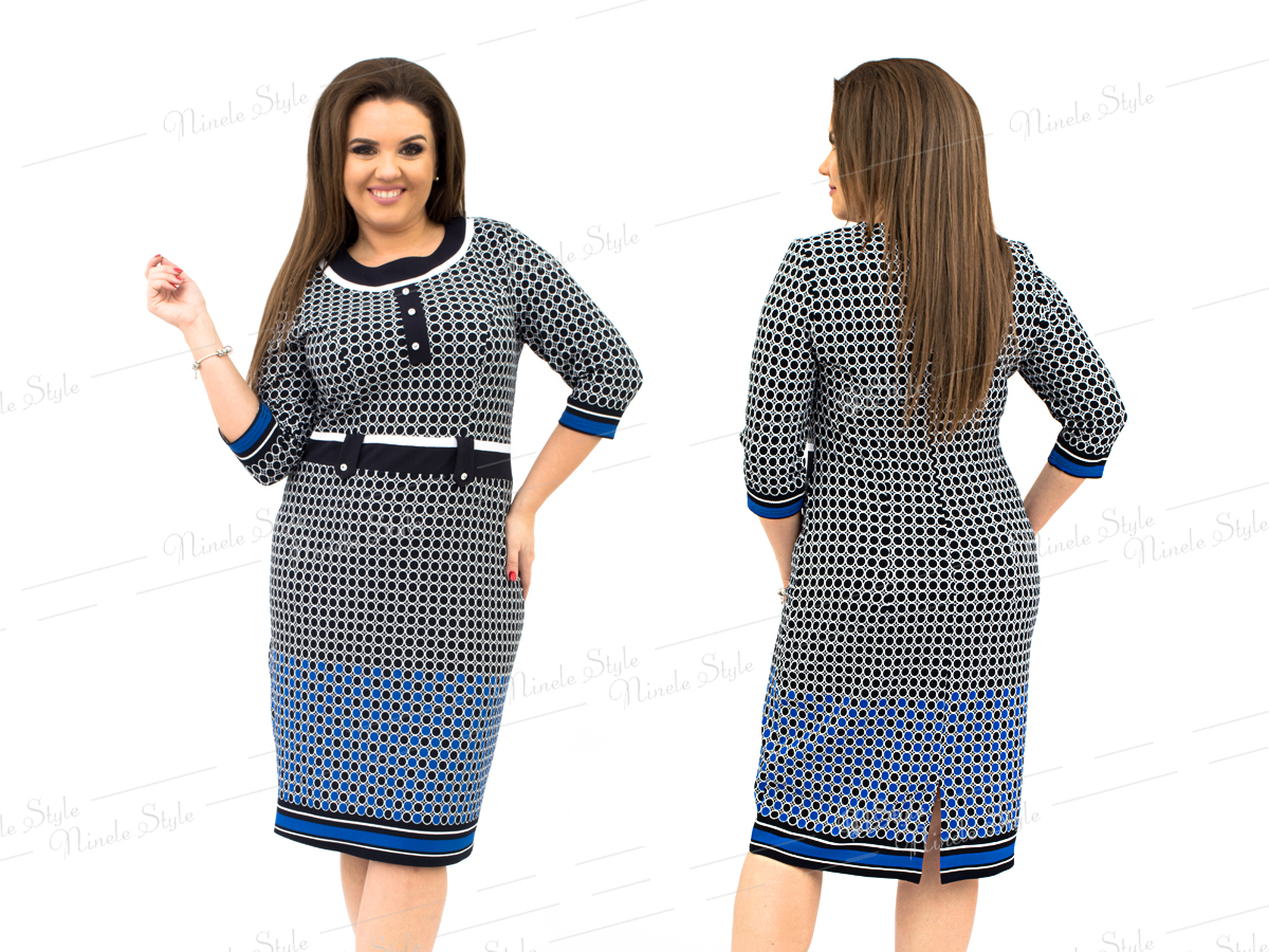 Повседневное женское платье с горохоаым принтом обязательный элемент женского гардероба.Перед платья отрезной по линии талии.Лиф платья с с рельефами от проймы.Горловона круглая,декорирована отделочной тканью. По линии талии вставлен пояс,декорированый клапанами..Спинка цельнокроенная.Рукав вшивной,одношевный.