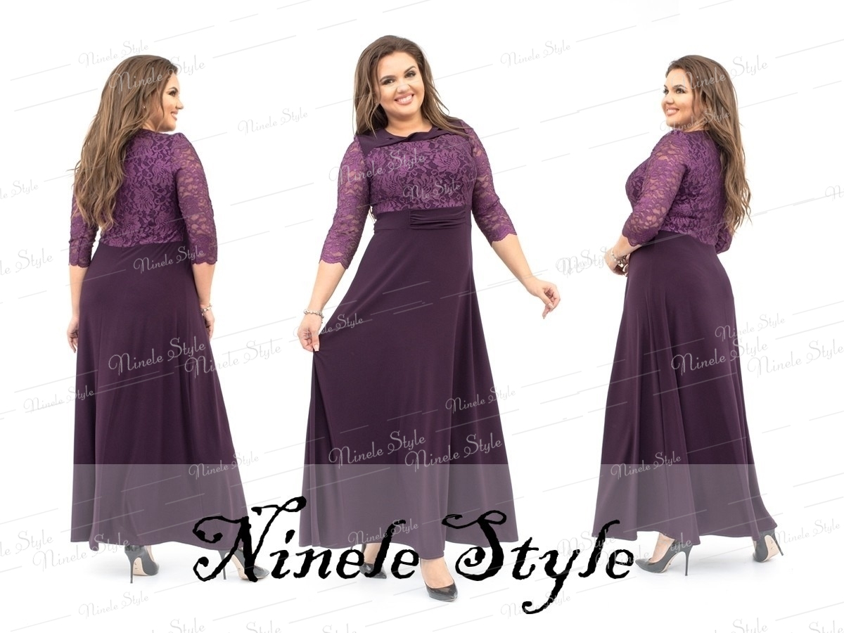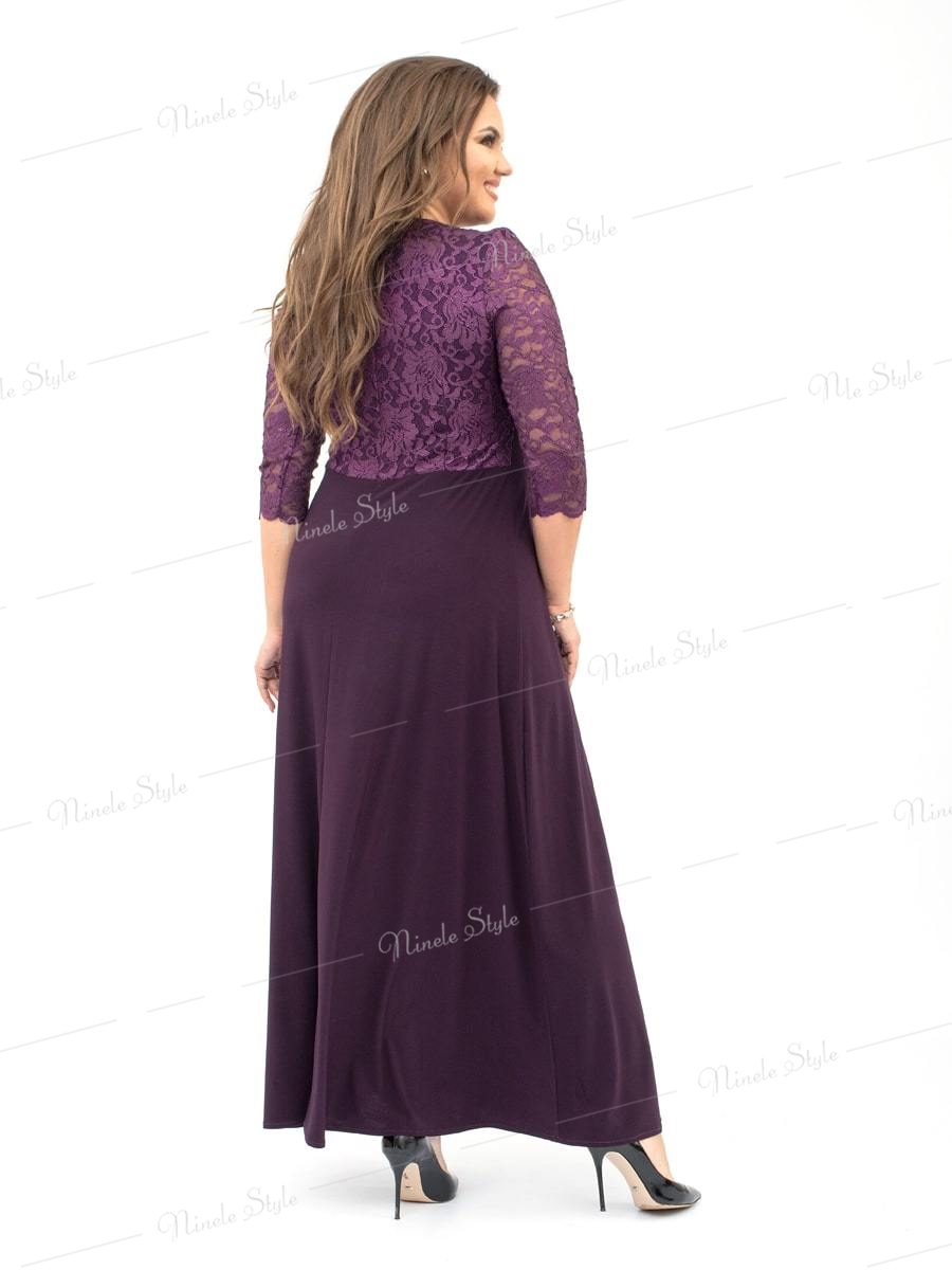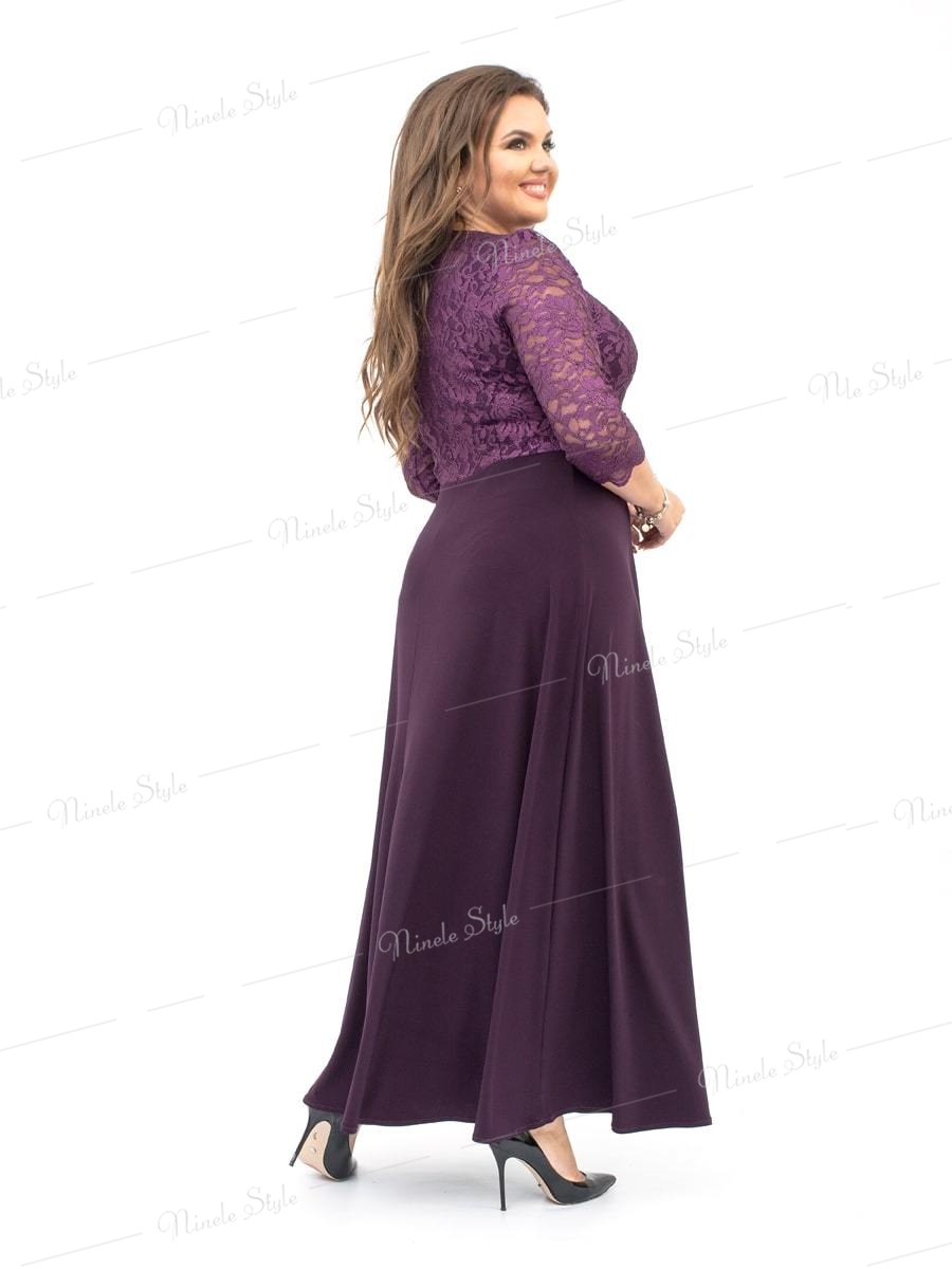 Кружевное гипюровое вечернее женское платье фиолетовое 256-2
