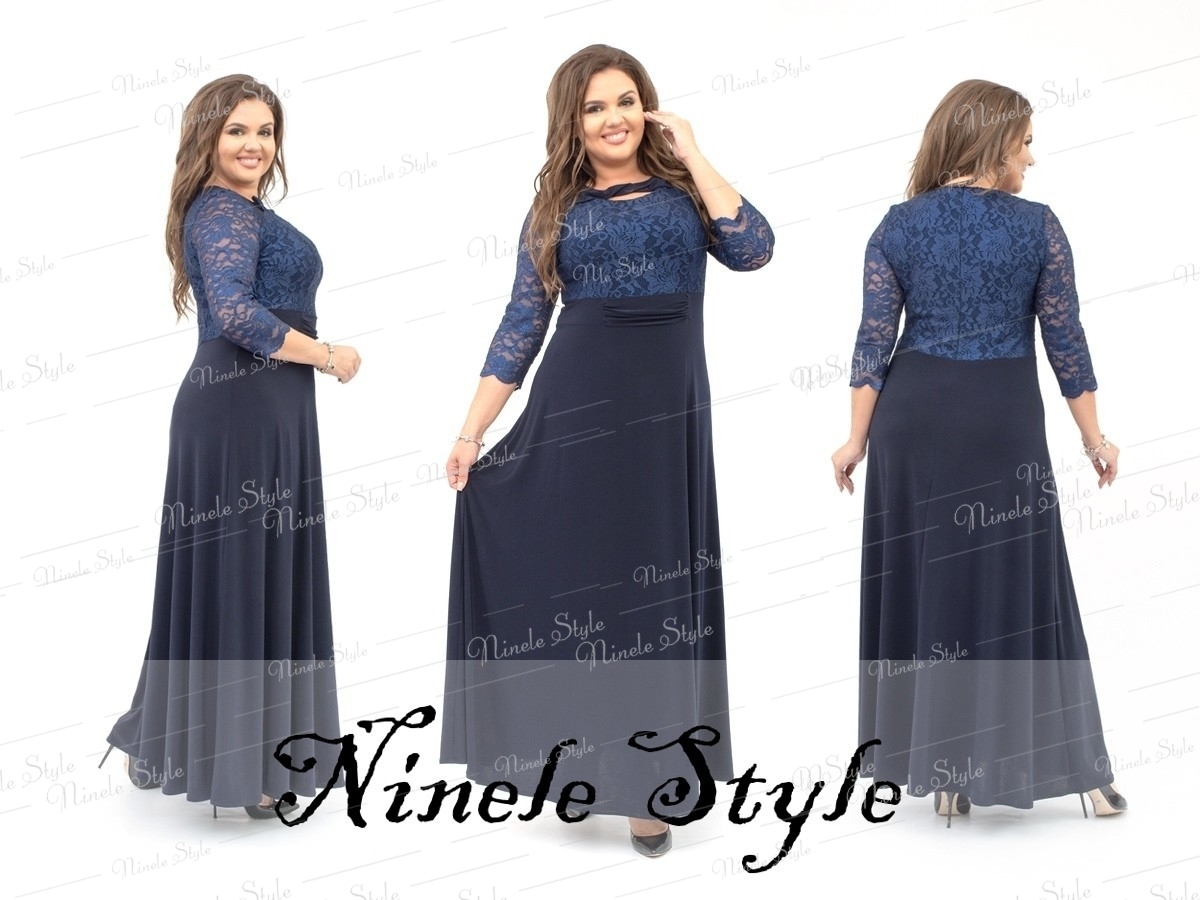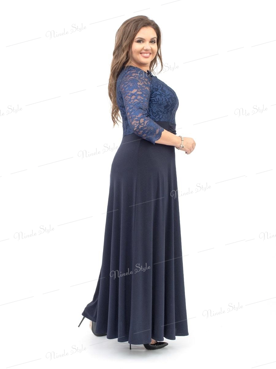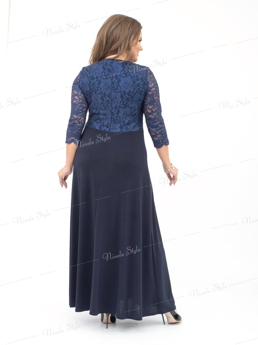 Кружевное гипюровое вечернее женское платье синее 256-4