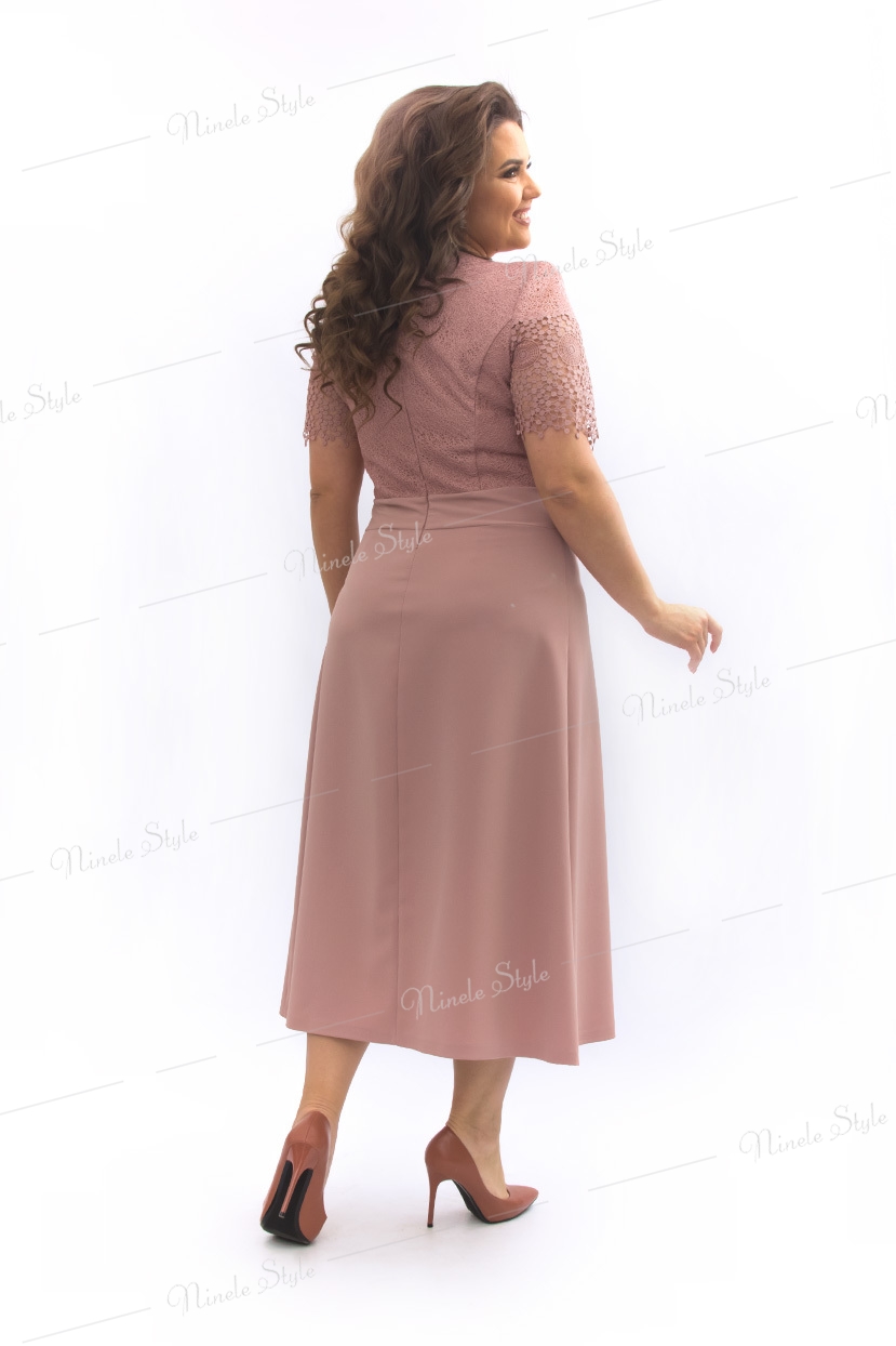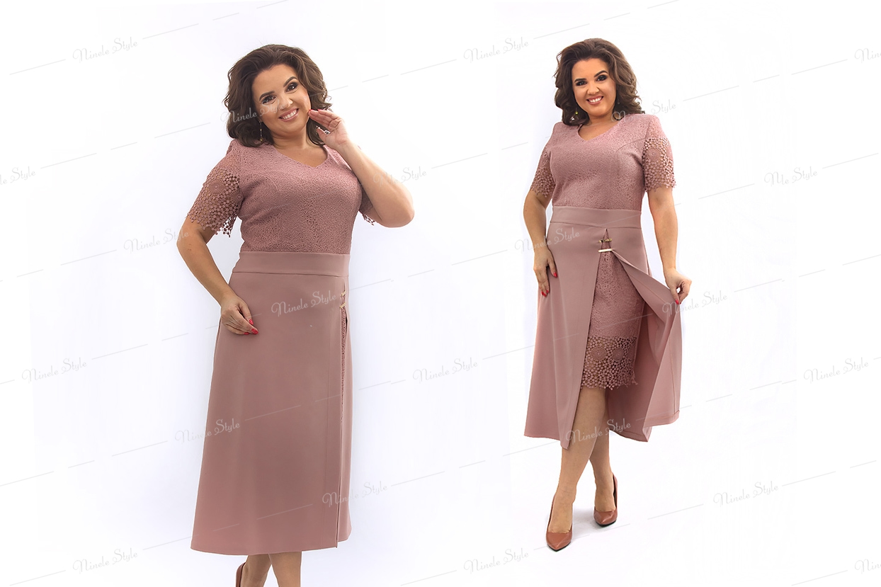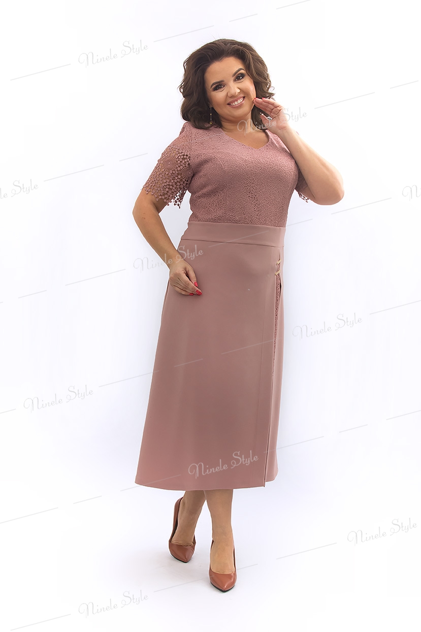 Элегантное женское платье с прилегающим лифом. Выполнено из однотонной костюмной ткани роскошного гипюра паутинки. Лиф отрезной по линии талии, с рельефами, горловина V-образной формы, обработана обтачкой. Нижняя часть платья состоит из верхней - расклешенной, длинной юбки и нижней - прилегающей, укороченной юбки из паутинки. На длинной юбке обработан разрез и декорирован украшением. Рукав короткий из гипюра. Спинка и перед покрыты кружевом. Потайная молния в среднем шве. Нежное платье прекрасно подойдет для любой женщины! Сделает Ваш образ по настоящему весенним и нарядным!