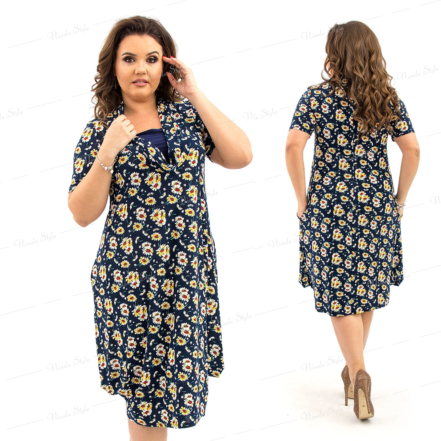 Простое трикотажное платье имеет легкий шарфик-воротник.
