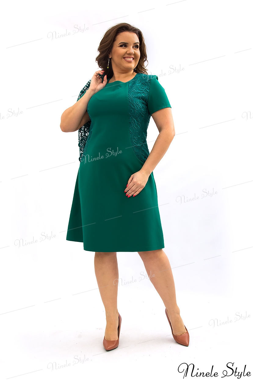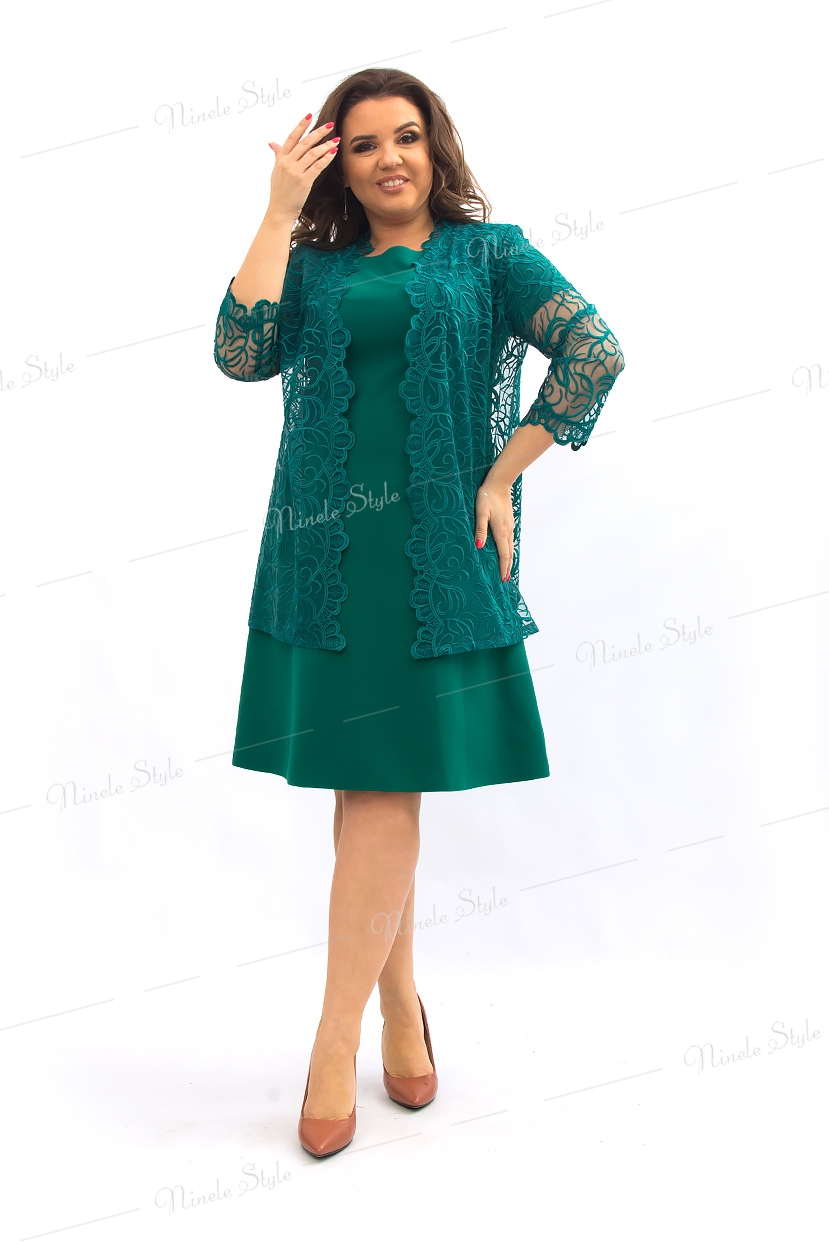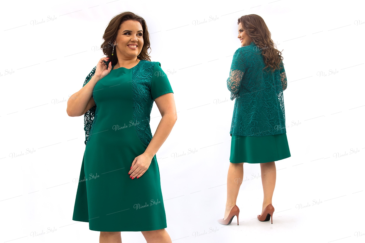 Зеленое женское платье с кружевной блузкой 355-6