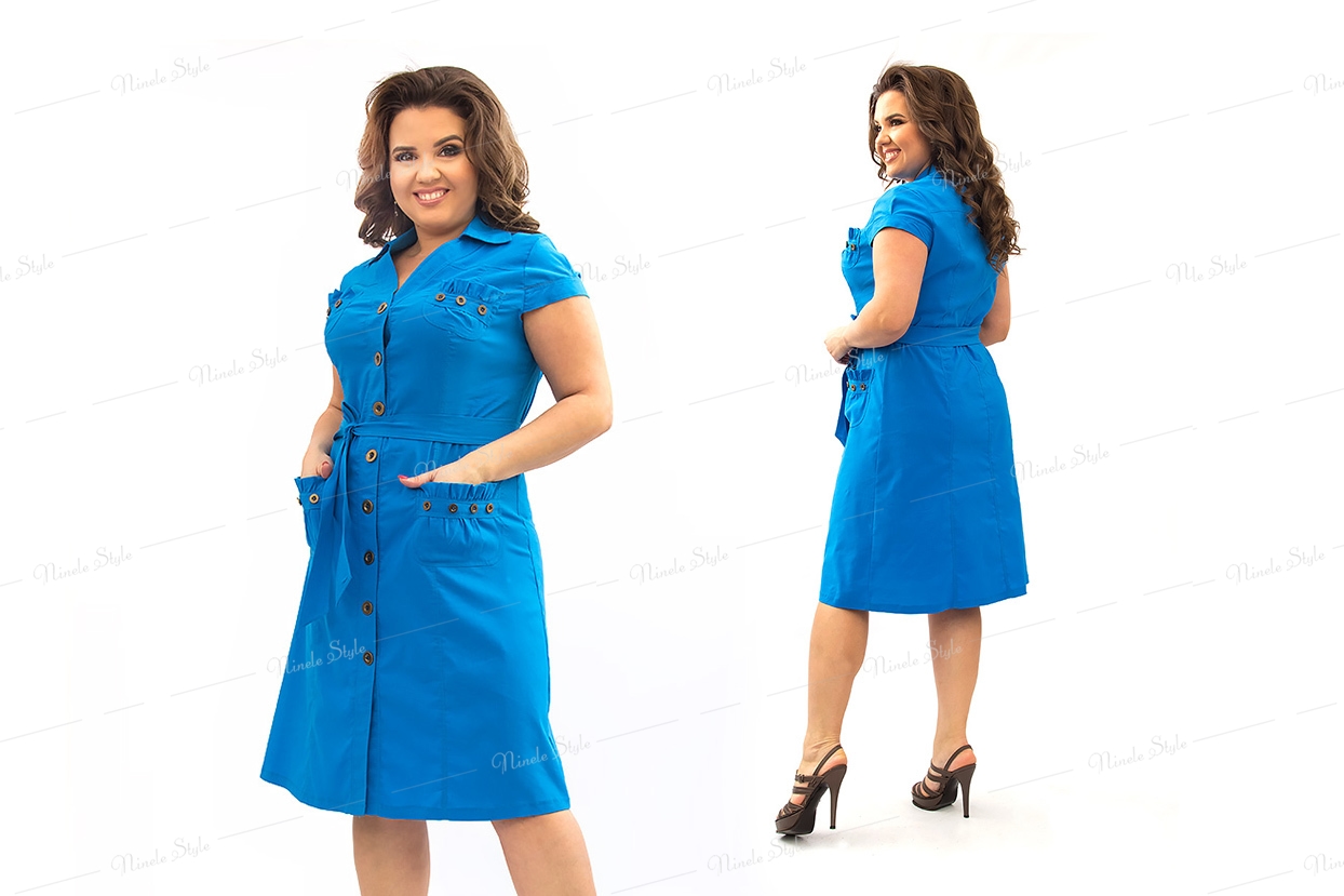 Голубое платье женское в стиле сафари 360-4
