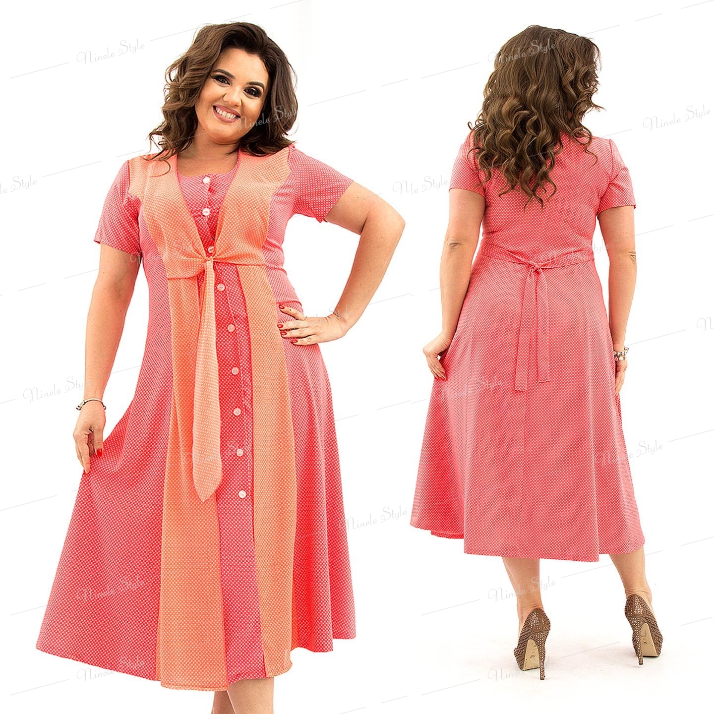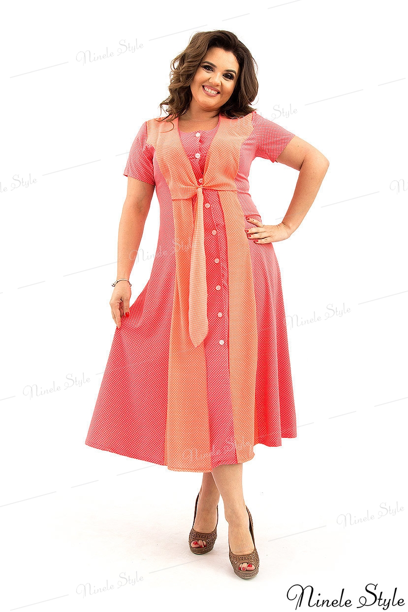 Летнее изящное коралловое женское платье  366-2