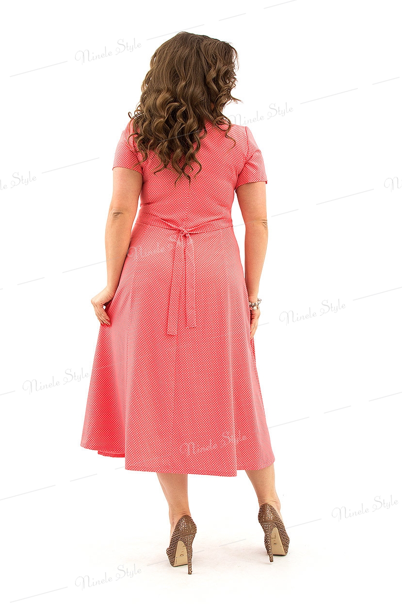 Летнее изящное коралловое женское платье 366-2