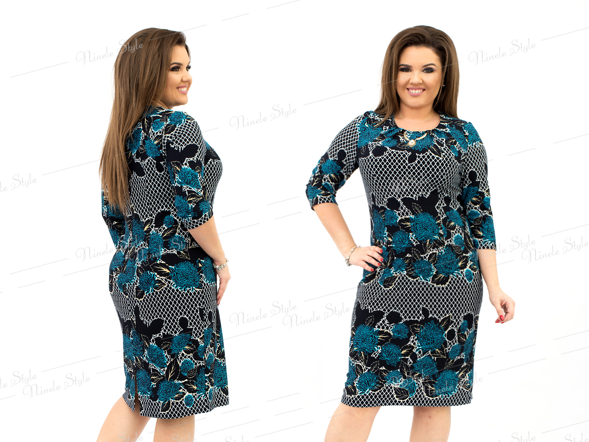 Повседневное трикотажное женское платье - бирюзовое 172-7