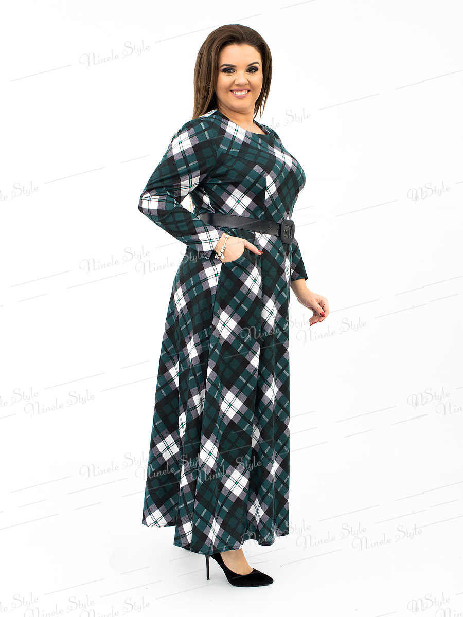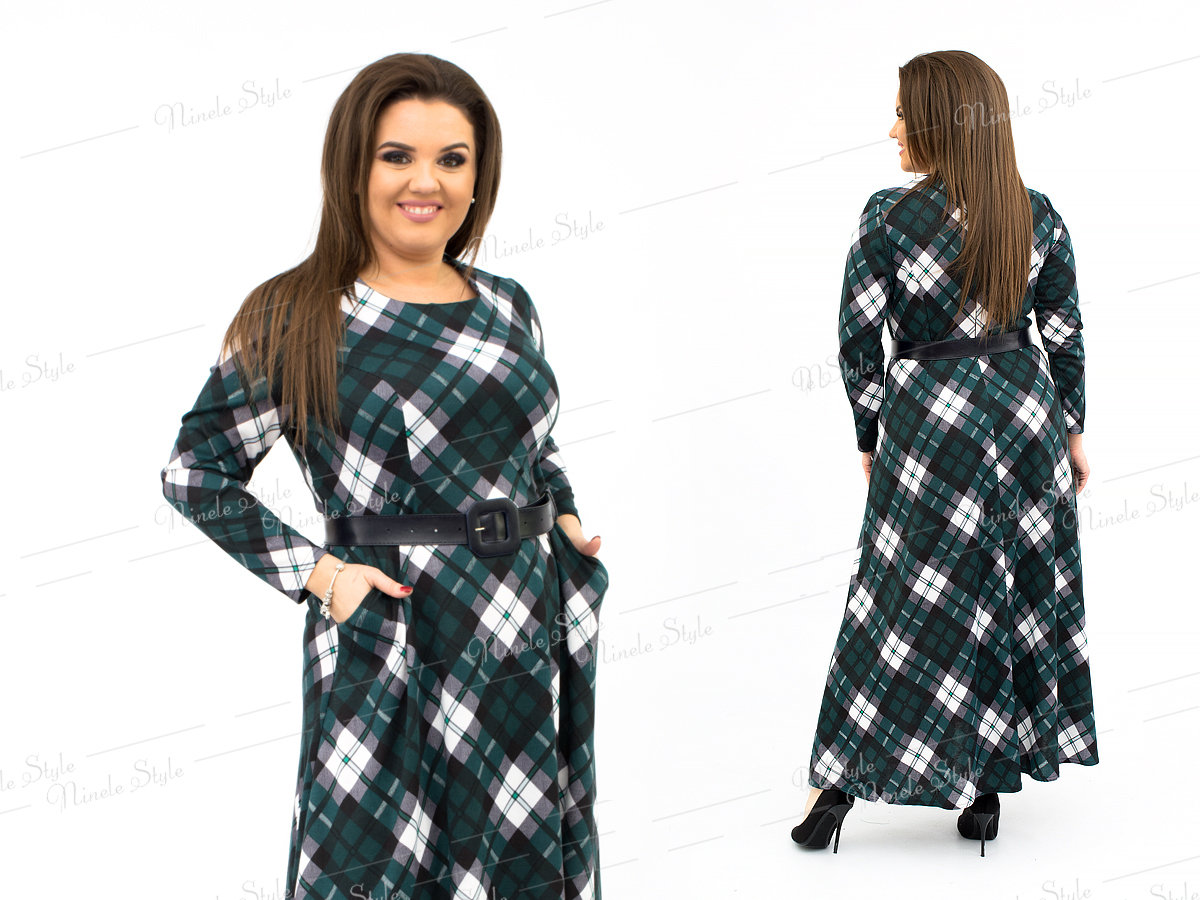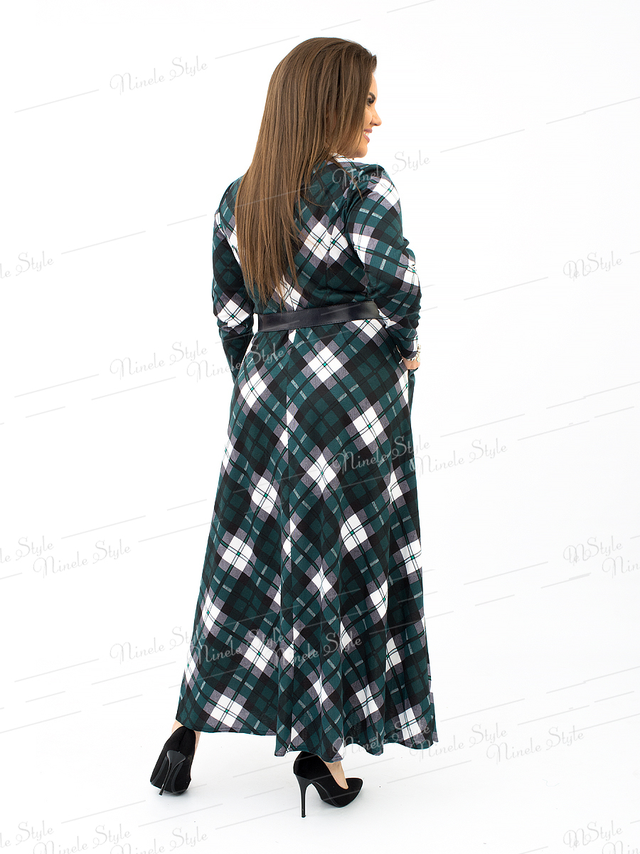 Трикотажное длинное женское платье в клетку 161-2